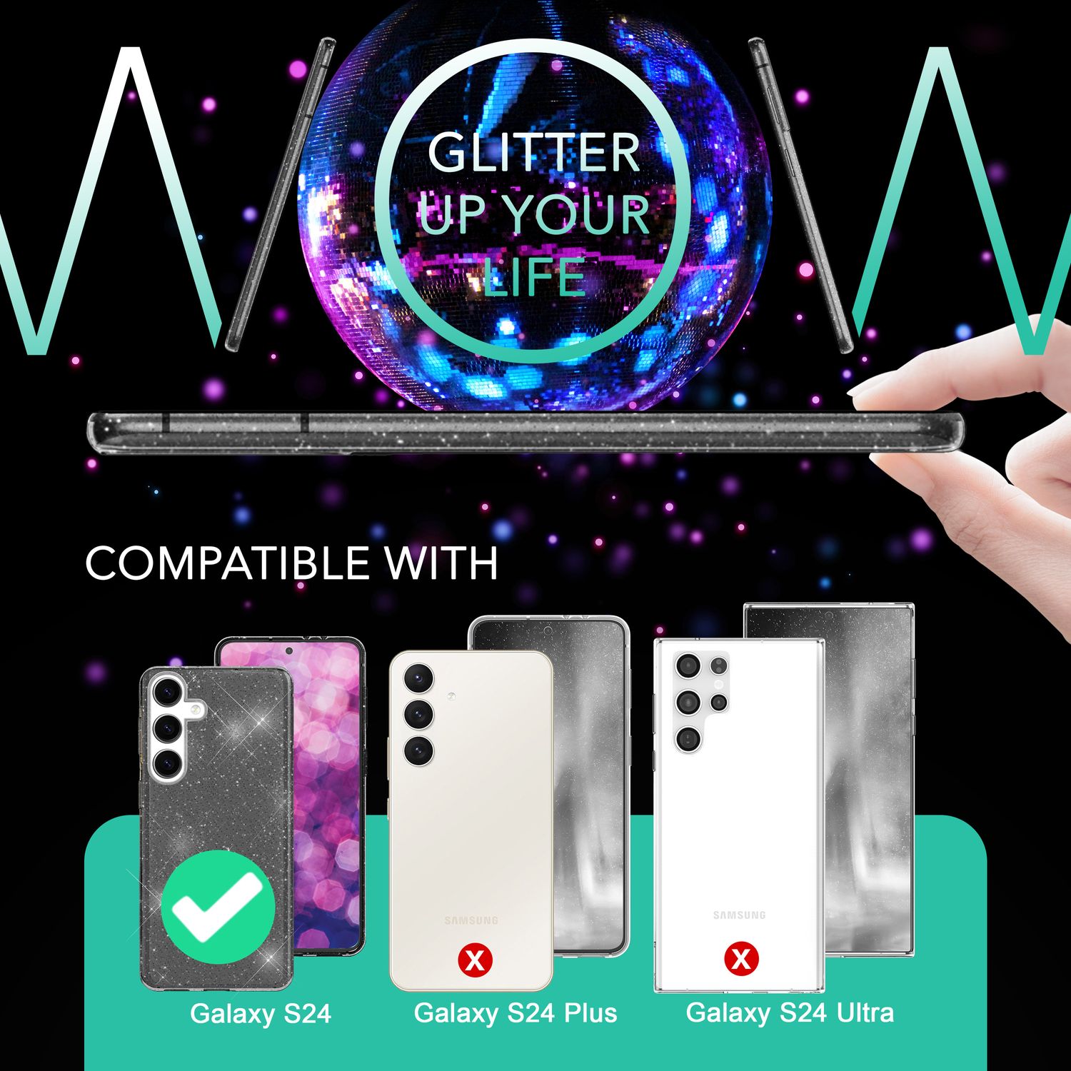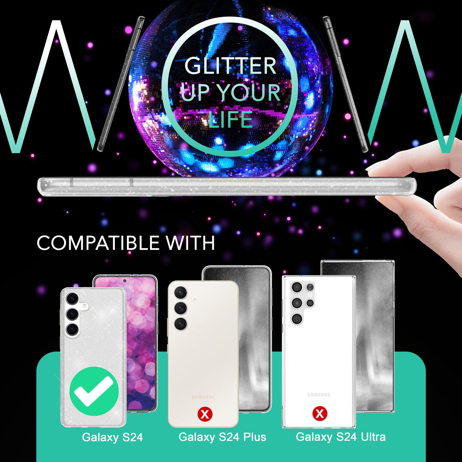 NALIA Glitter Protective Case for Samsung Galaxy S24, Transparent Silicone Phone Case, Glitter Case