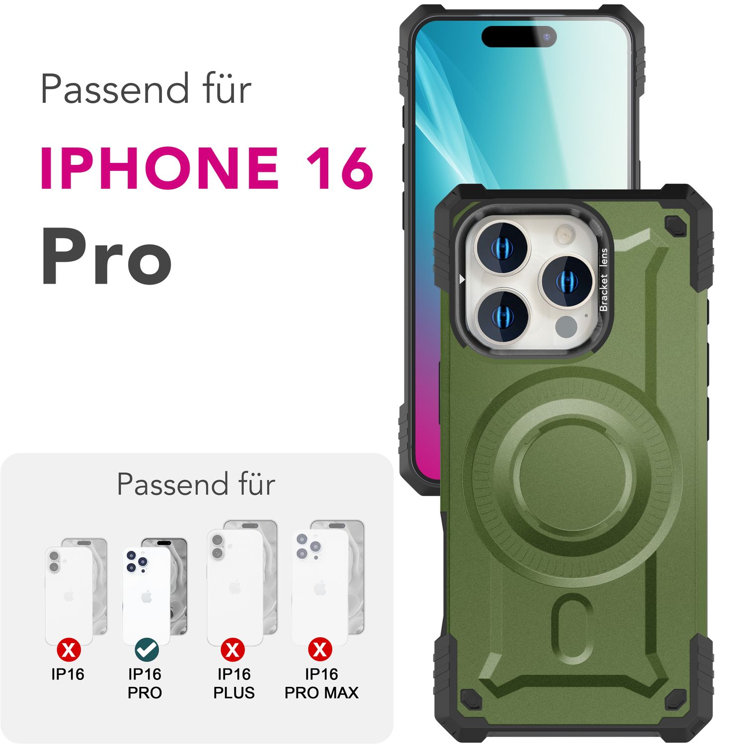 NALIA Granite Case for iPhone 16 Pro [for MagSafe], Extremely Robust Armored Protection, Strong MagPower Magnet, Shock and Shatter Resistant, Camera Stand