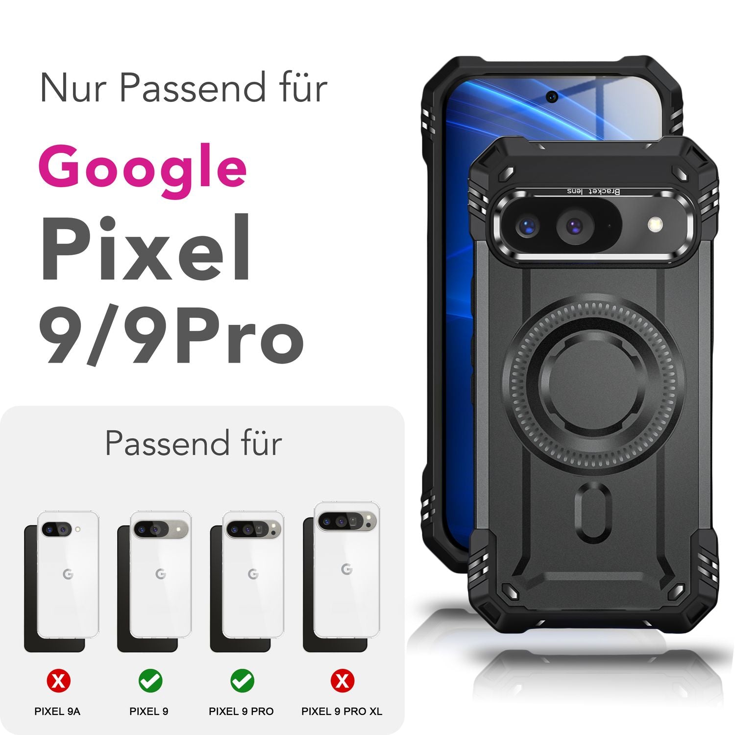 NALIA Granite Case for Google Pixel 9 – Phone Case with MagSafe, Shockproof Armored Hard Case with Dual-Layer Protection, Integrated Metal Kickstand, Military Cover