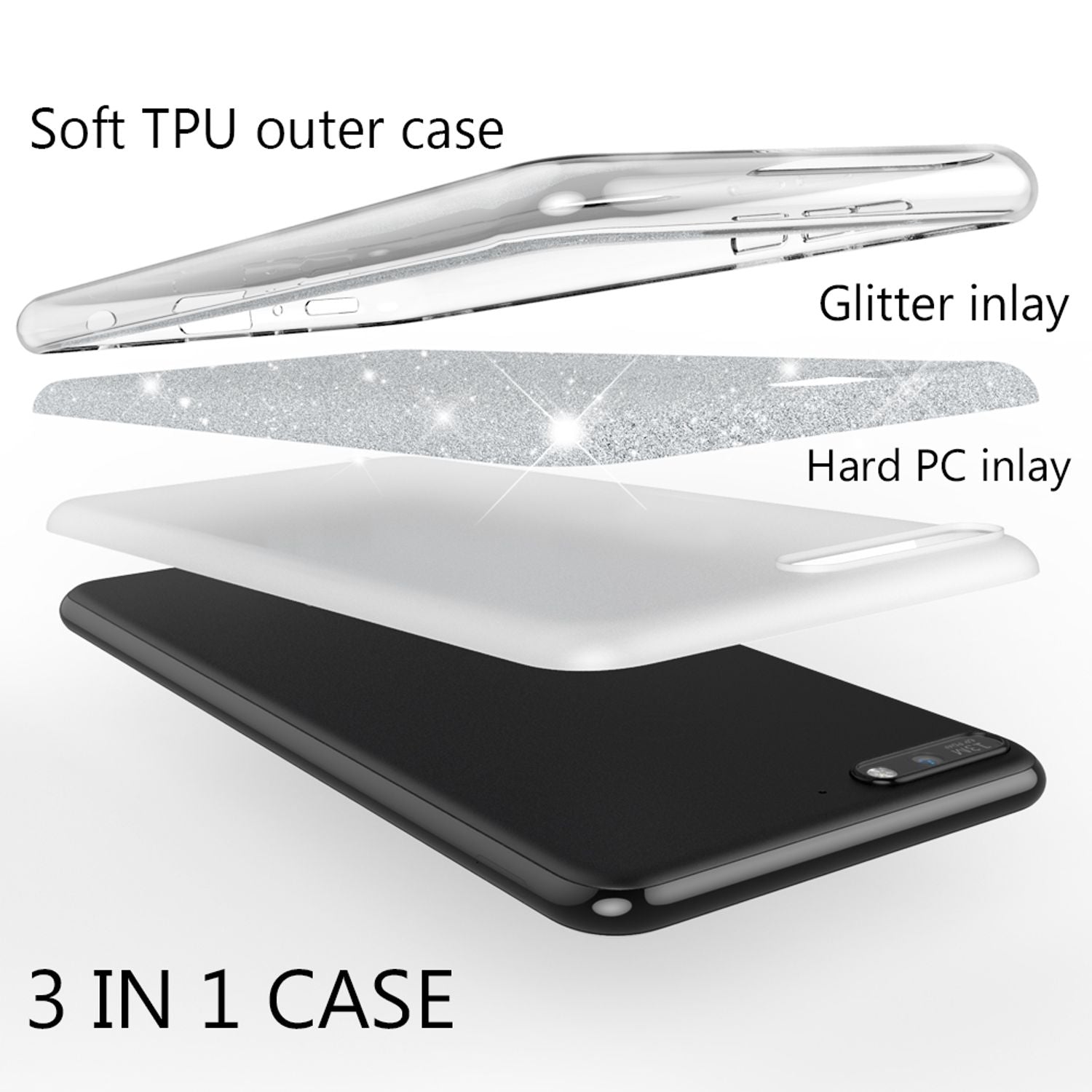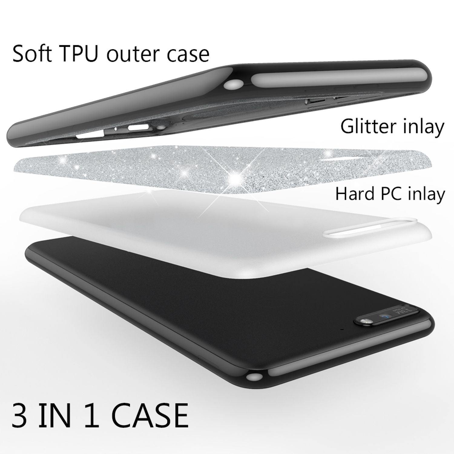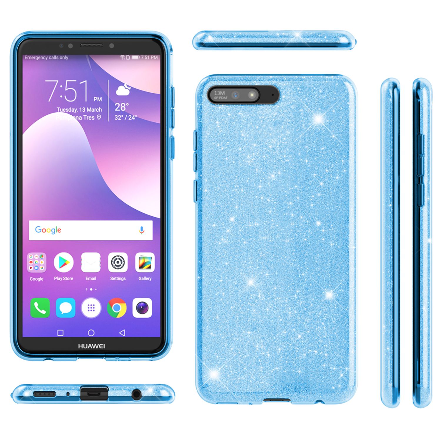 NALIA mobile phone case compatible with Huawei Y6 2018, glitter silicone case back cover
