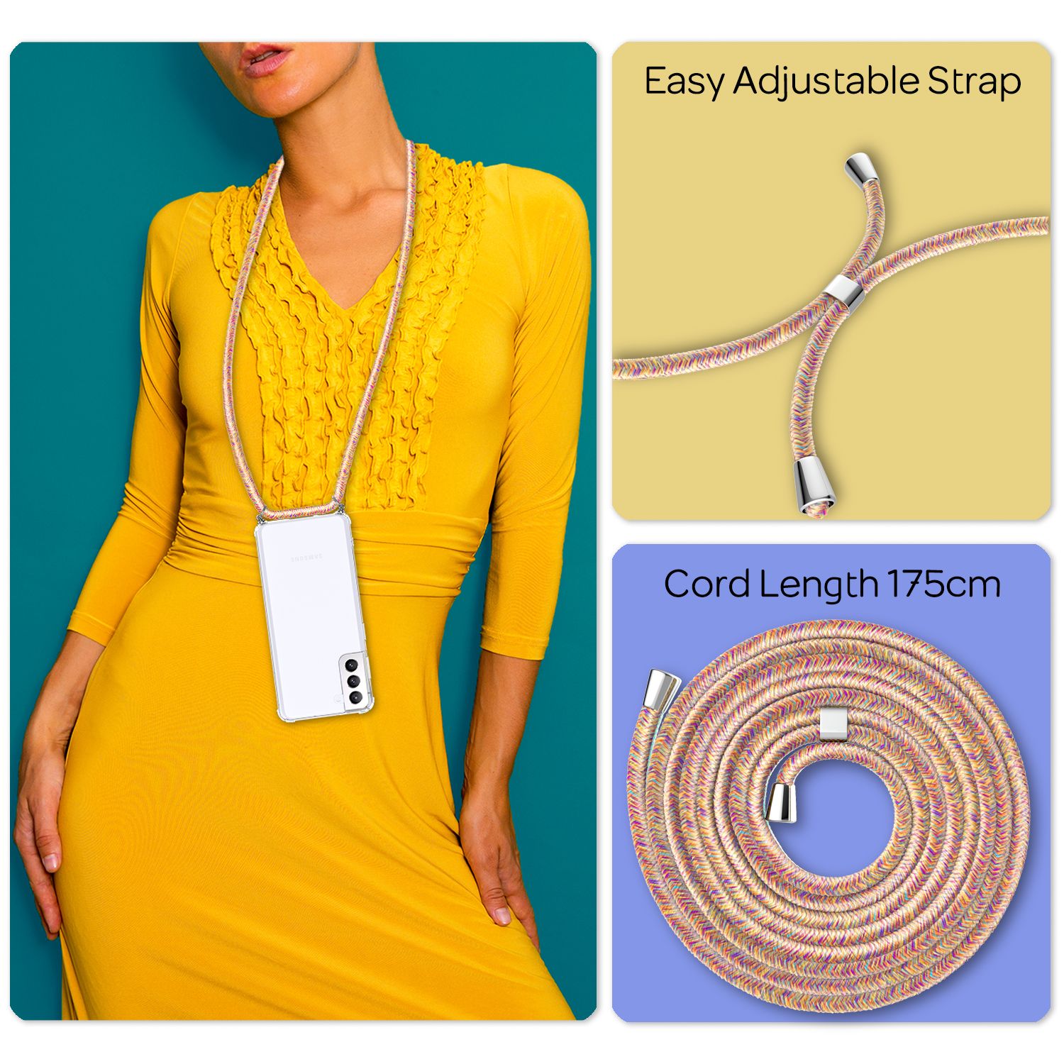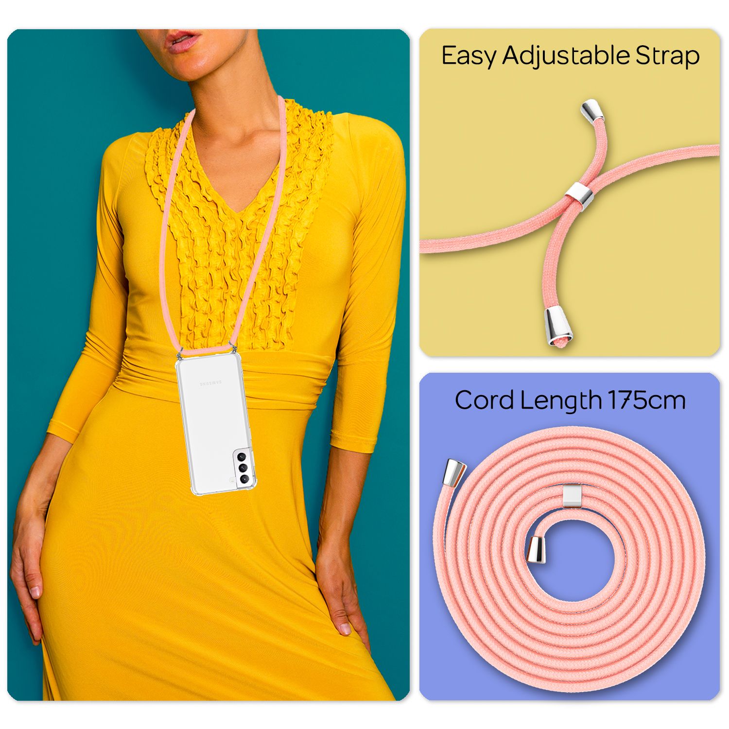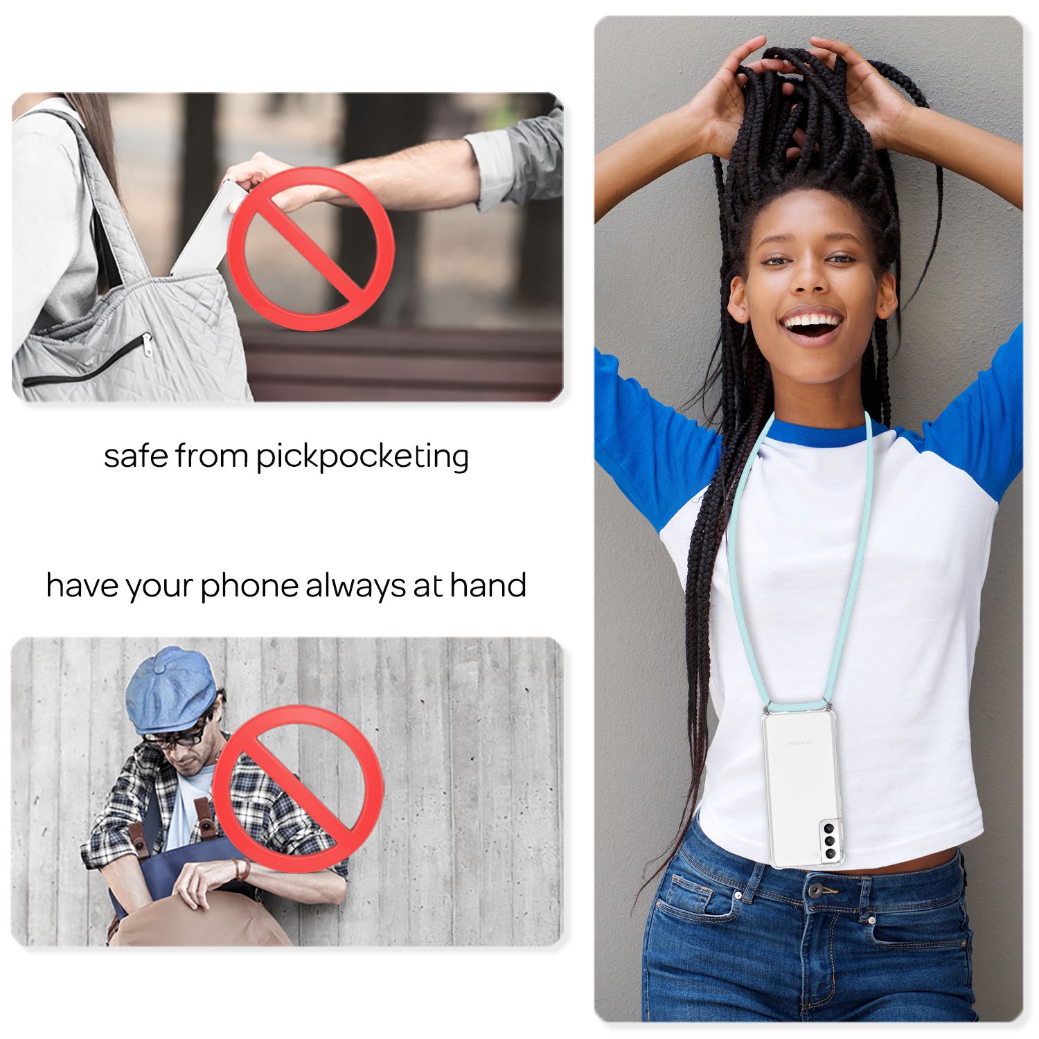 NALIA Phone Case with Chain for Samsung Galaxy S22, Transparent Clear Protective Case & Phone Cord for Wearing Around Your Neck