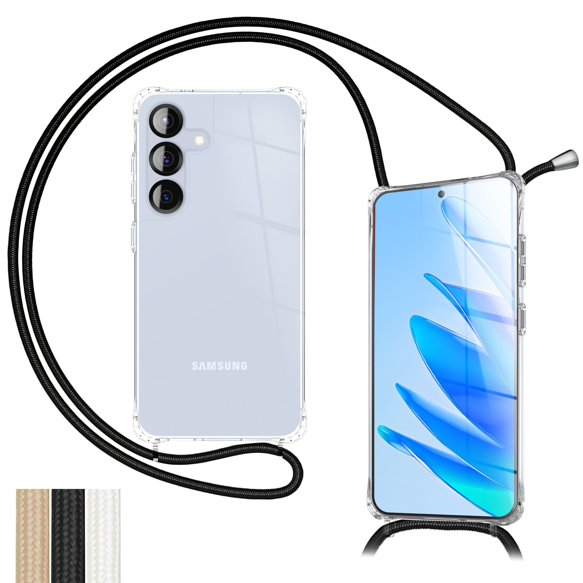 NALIA Hangit Case for Samsung Galaxy S25 FE (Crossbody Case) - Transparent Phone Case with Strap, Crystal Clear & Anti-Yellowing, Adjustable 160cm Phone Chain