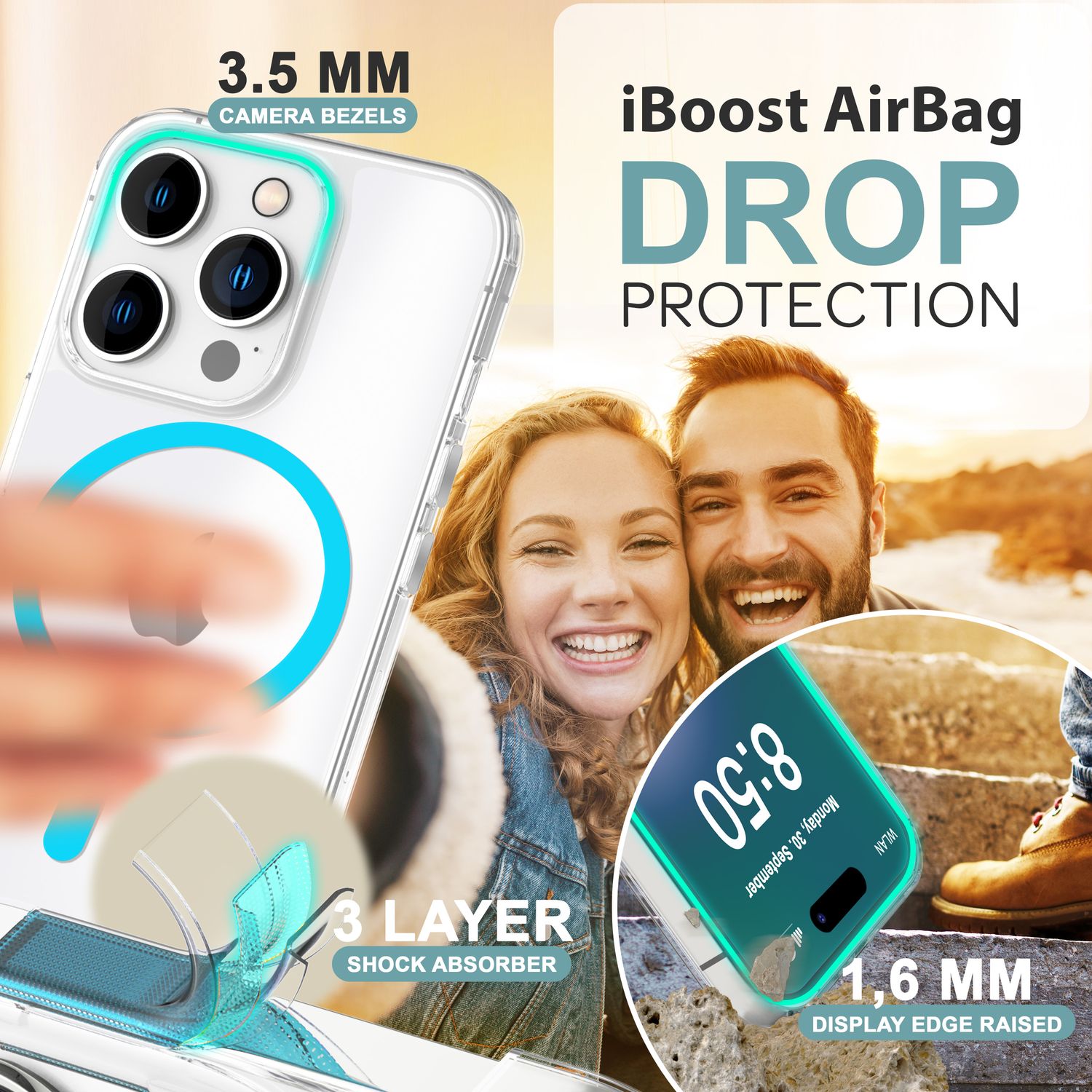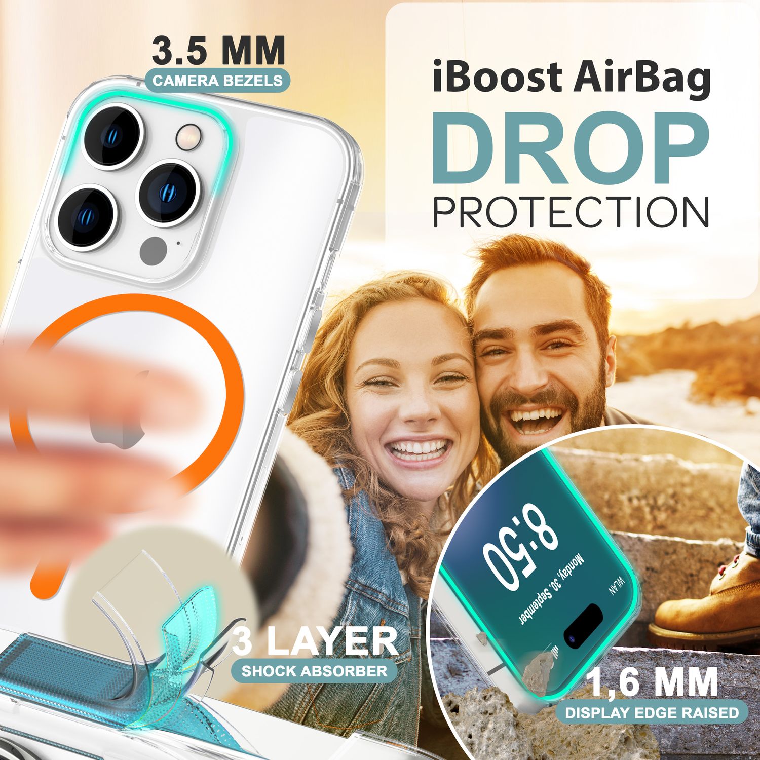 Thanks to the MagSafe-compatible magnetic ring, the case supports wireless charging and the use of MagSafe accessories – quickly and easily, without removing the case.