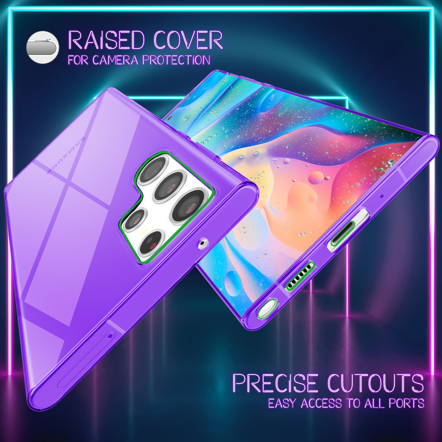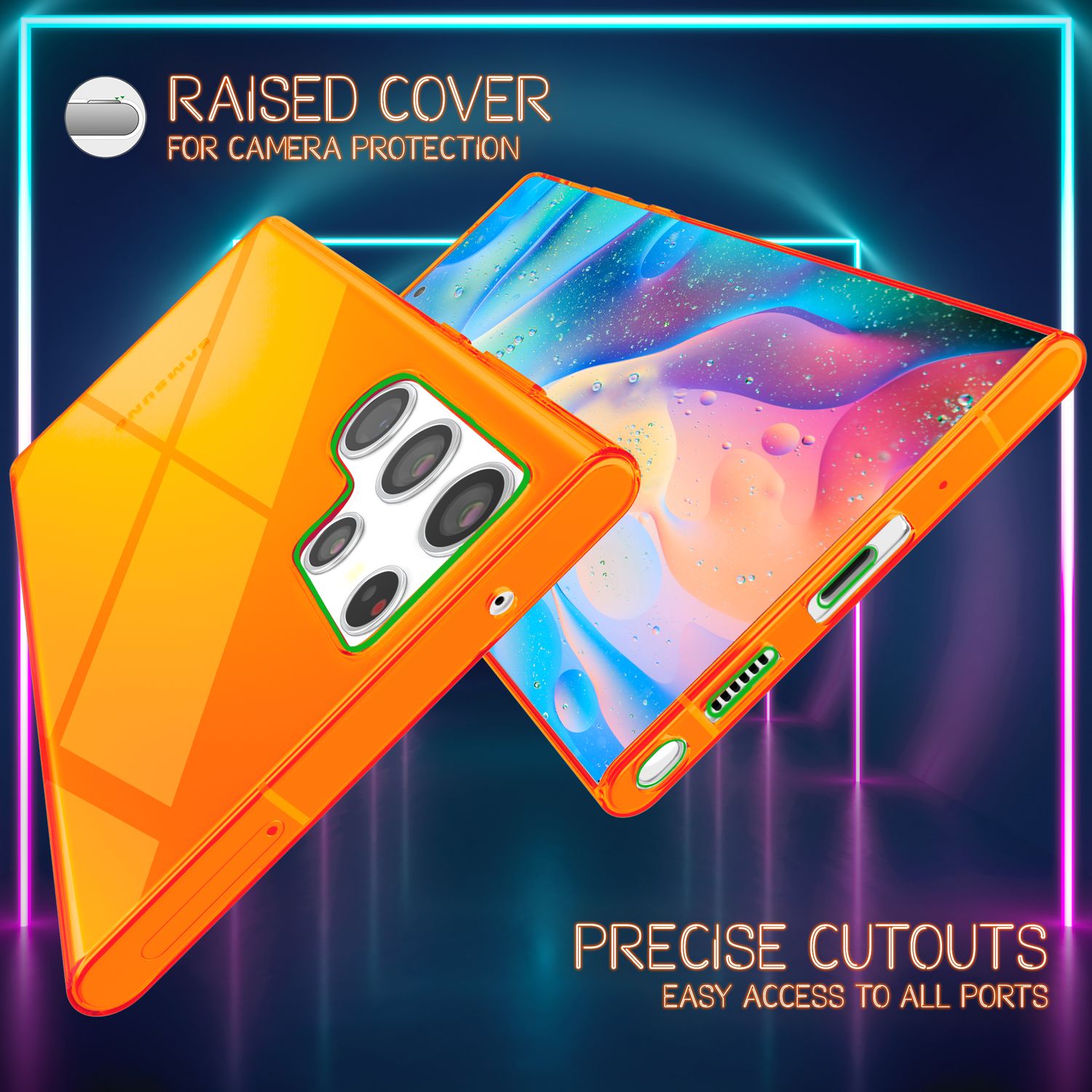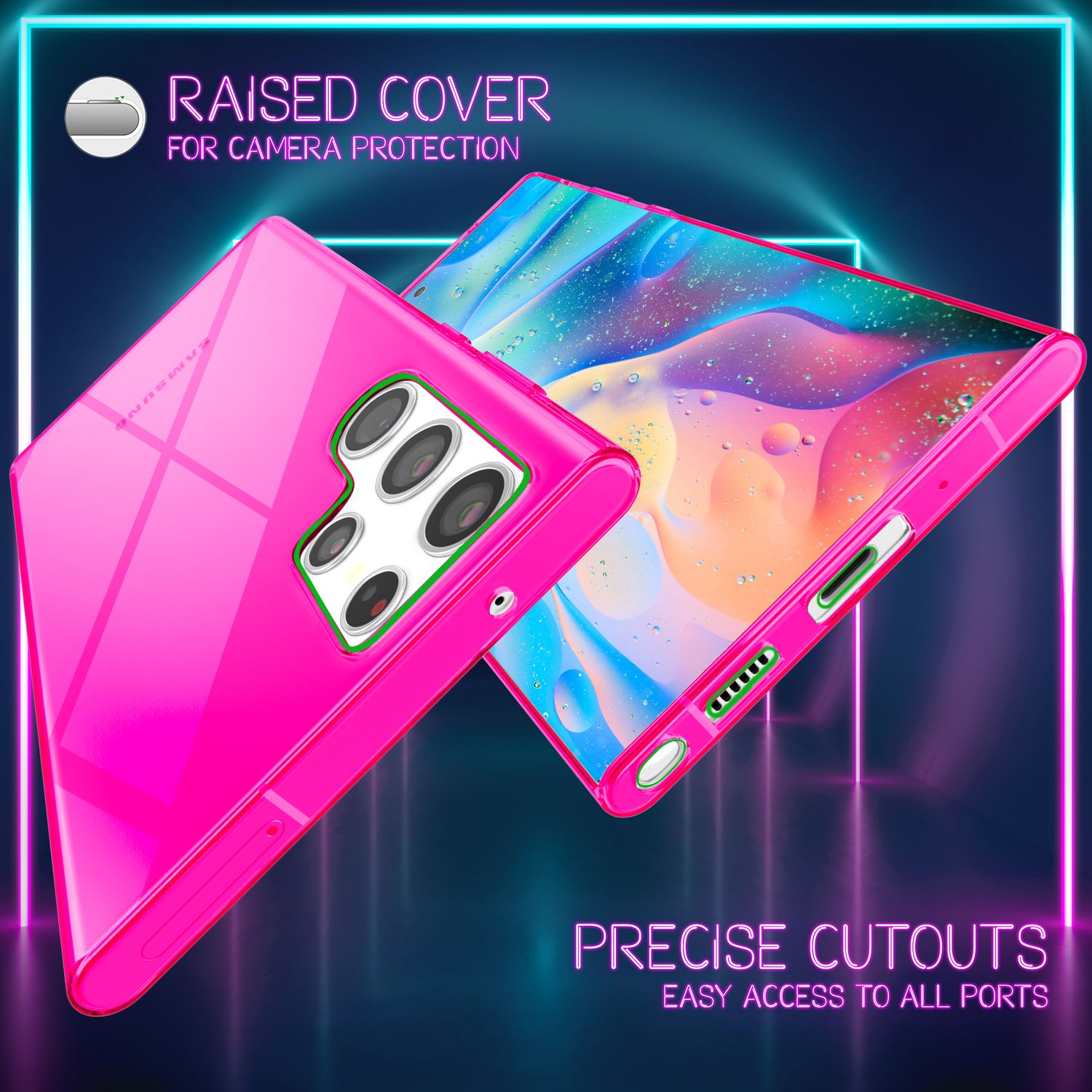NALIA Clear Neon Phone Case for Samsung Galaxy S22 Ultra, Transparent, Colorful, Luminous, Slim Protective Cover