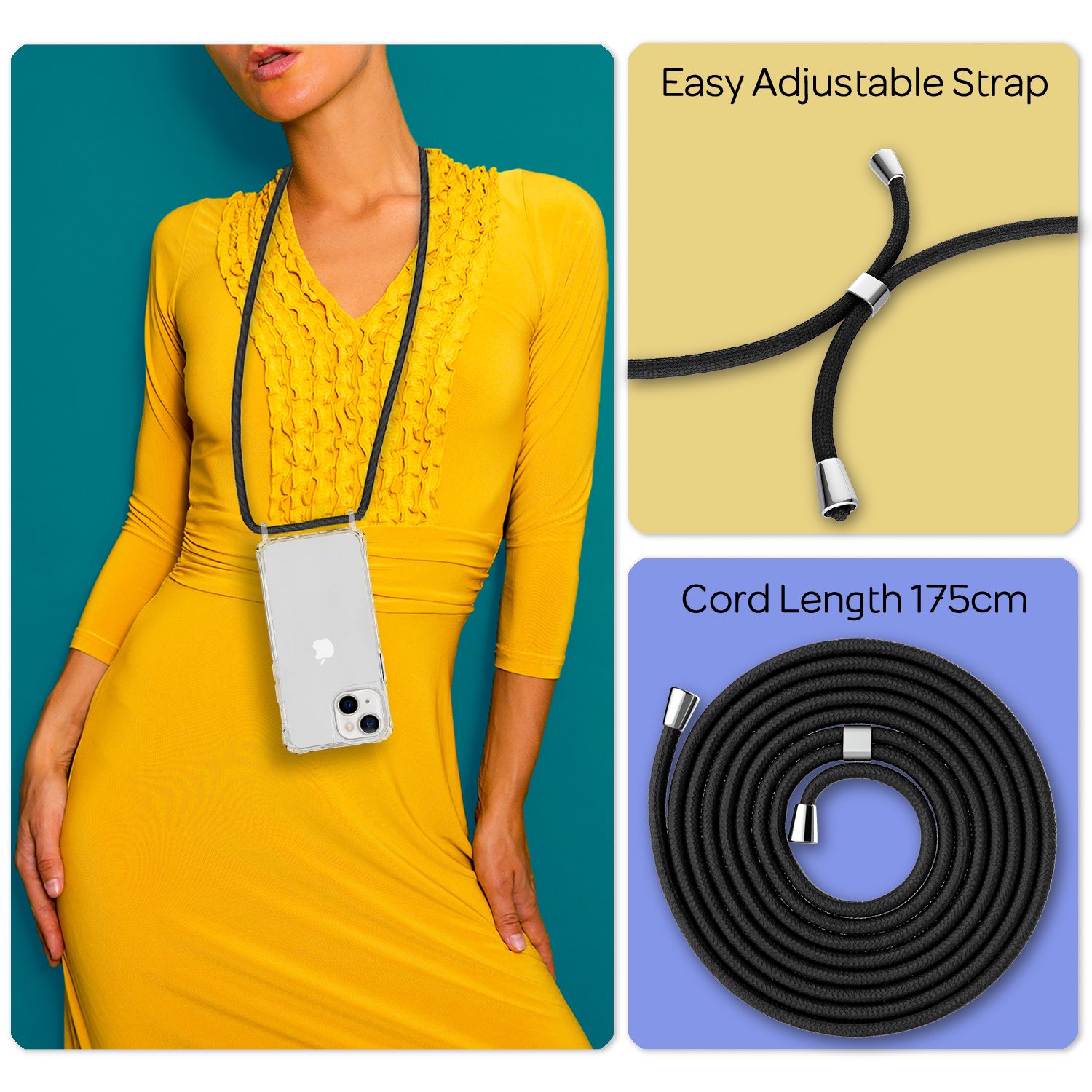 NALIA Clear Hybrid Case with Chain for iPhone 13, Transparent Hard Case & Silicone Frame, Protective Case & Phone Cord