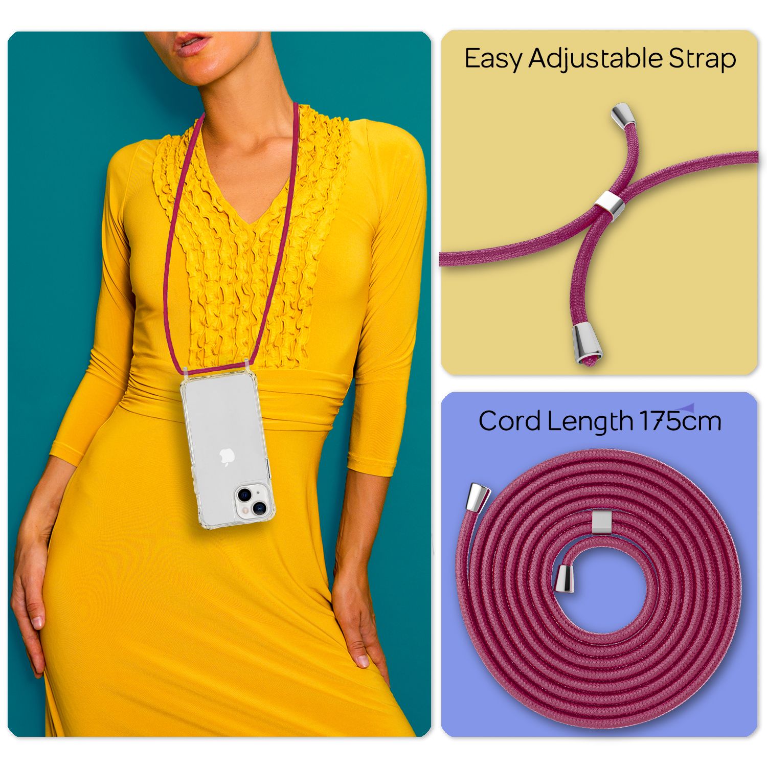 The 160 cm long phone strap is comfortable to wear and extra resistant to tangling. You can wear your smartphone flexibly over your shoulder, around your neck, or crossbody – whichever suits you best.