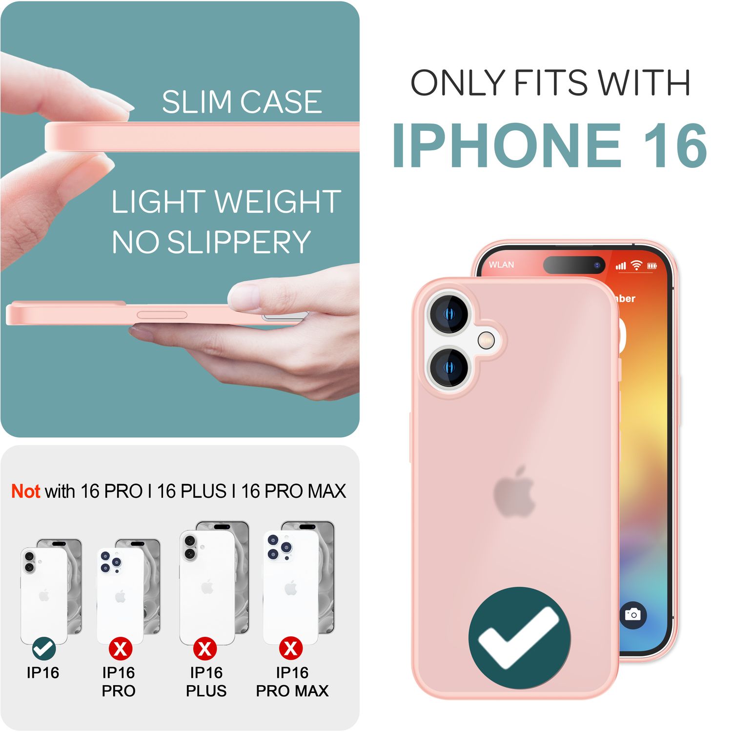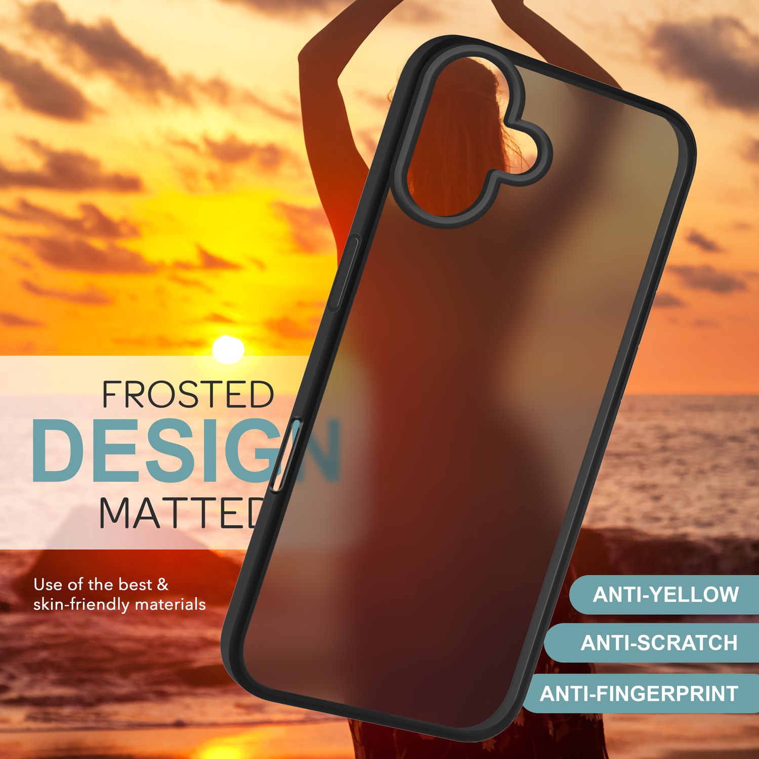 NALIA Matte Hybrid Case for iPhone 16, Anti-Fingerprint Acrylic Back & Silicone Edge, Semi-Transparent