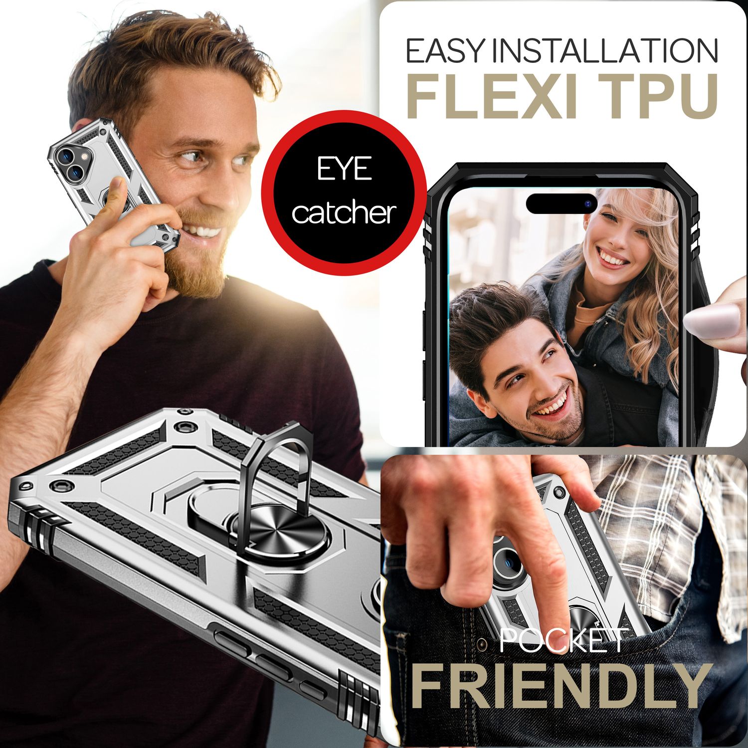 NALIA Military-Style Ring Case for iPhone 16 Plus, Extreme Protection Armored Phone Case, Hard Case with 360° Ring