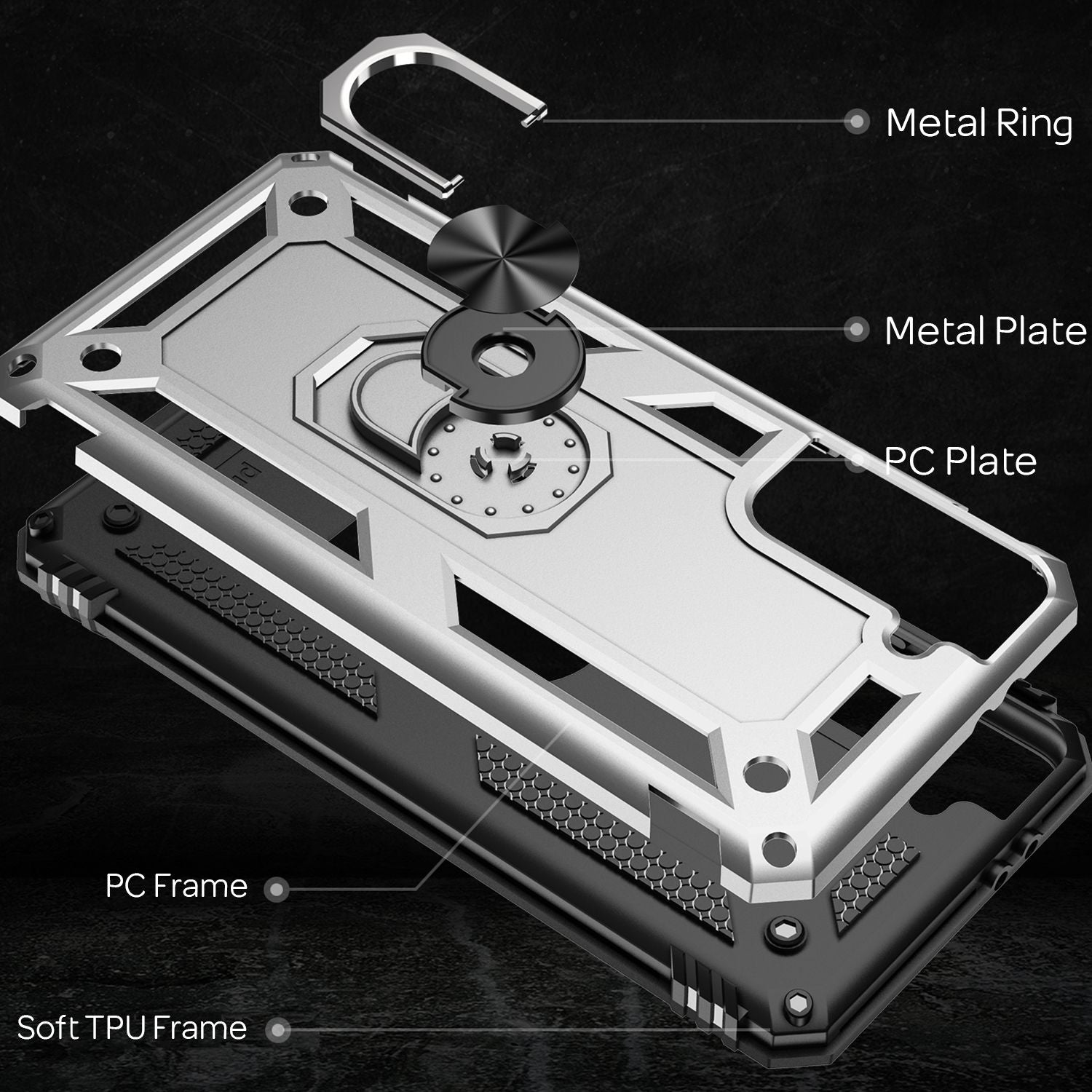 NALIA Military-Style Ring Case for Samsung Galaxy S21 FE, Extremely Protective, Shockproof, Robust, 360° Ring for Stand Function