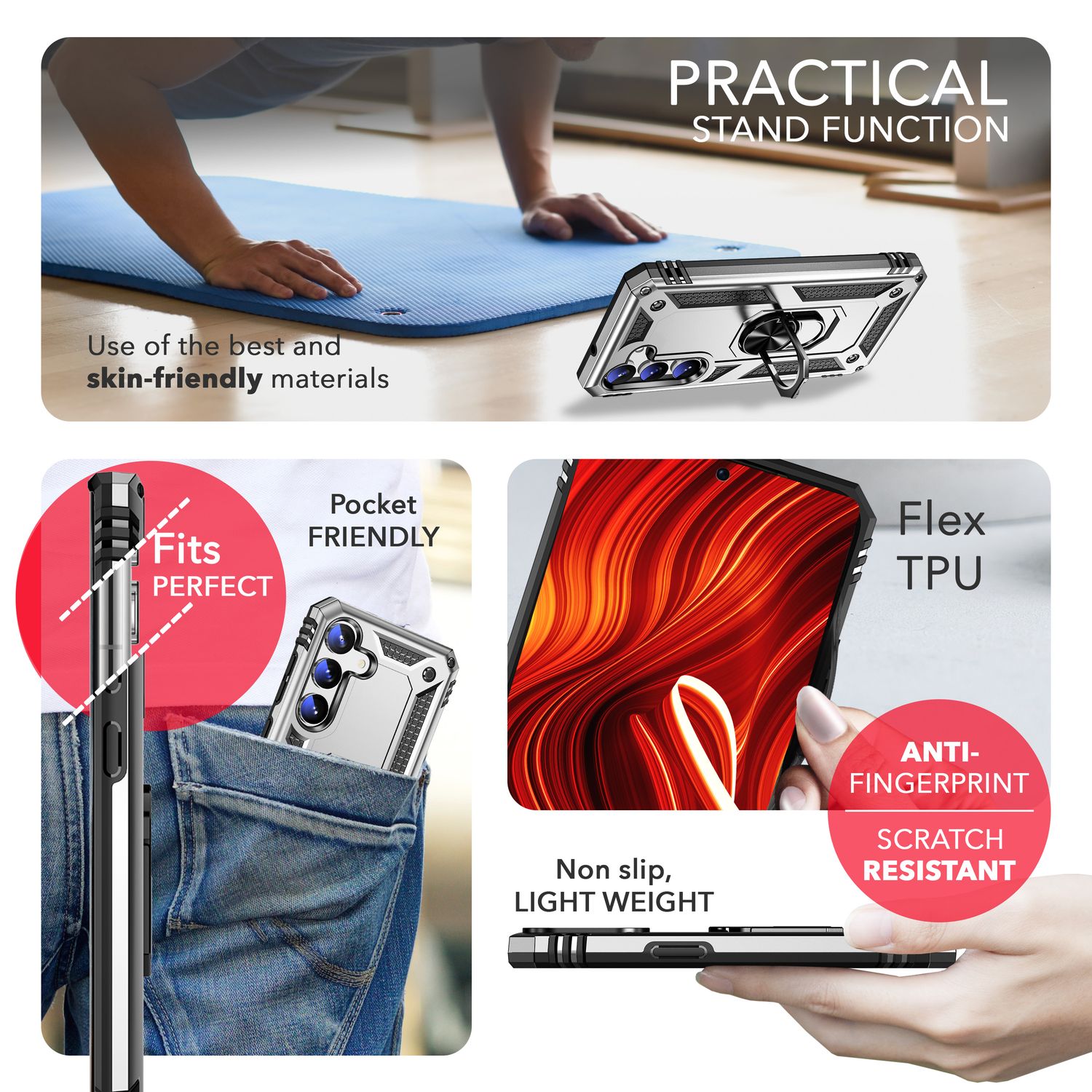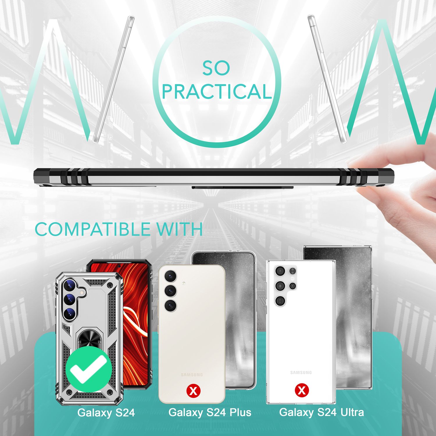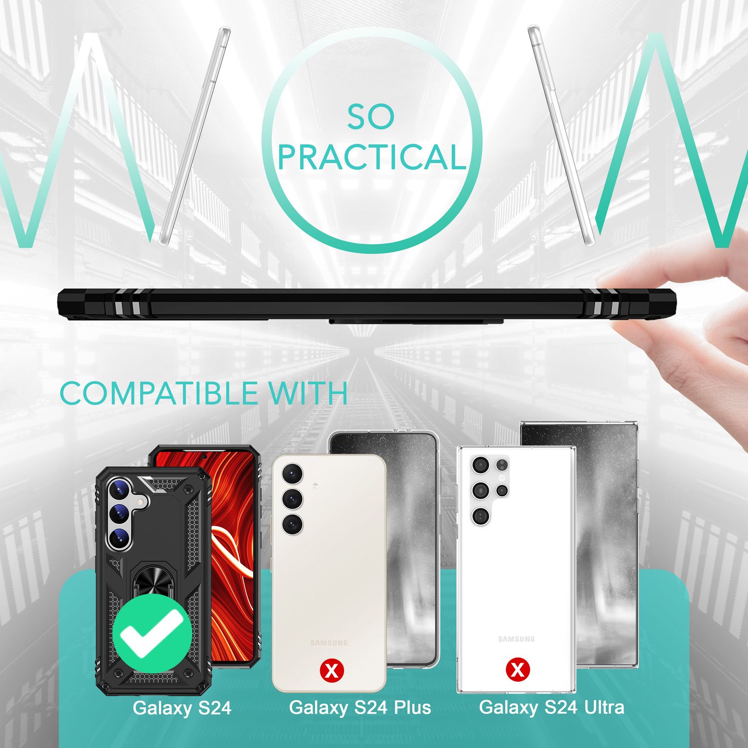 NALIA Military-Style Ring Case for Samsung Galaxy S24, Extremely Robust & Shock-Resistant, Outdoor Protective Case