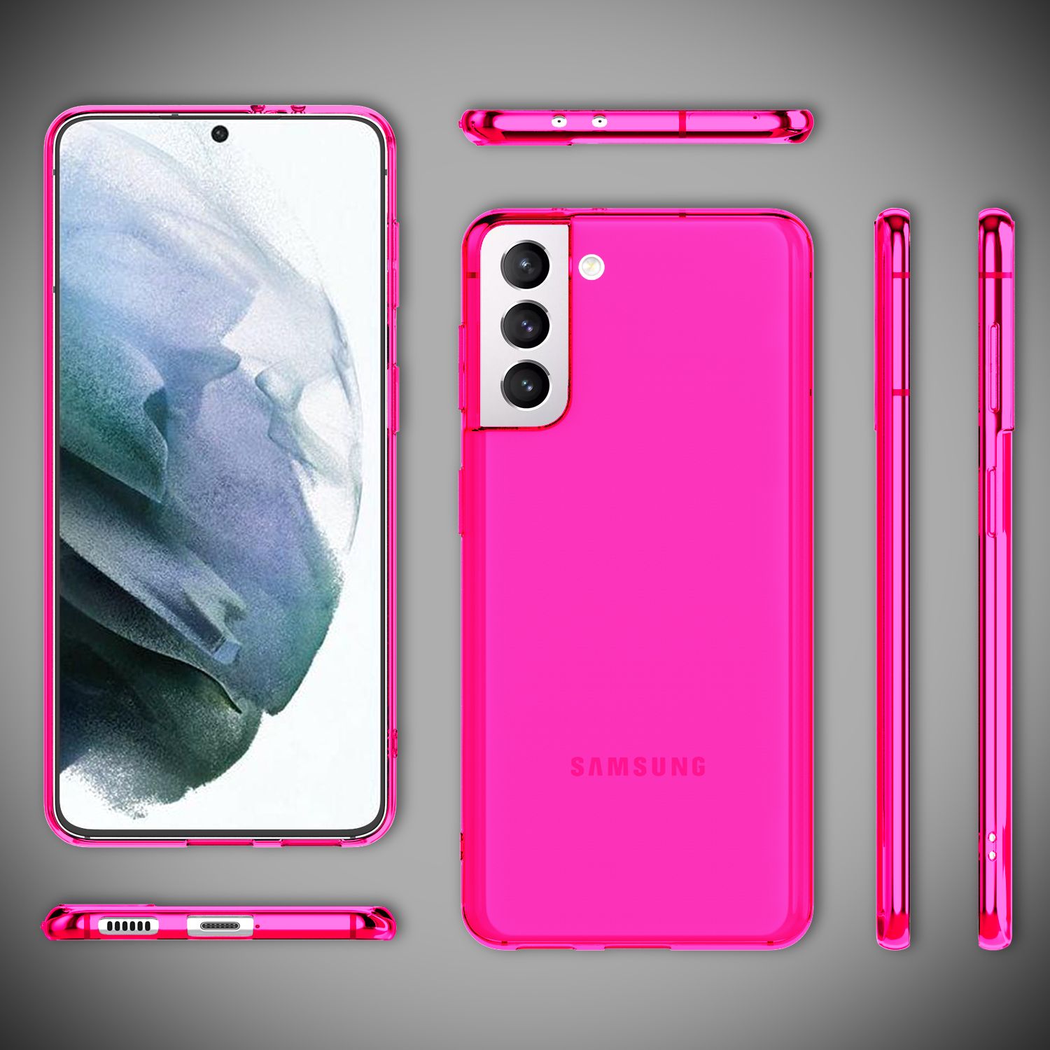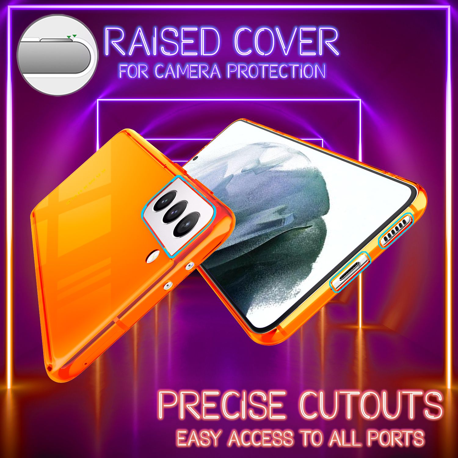 NALIA Neon Phone Case for Samsung Galaxy S21, Transparent Silicone Case Cover