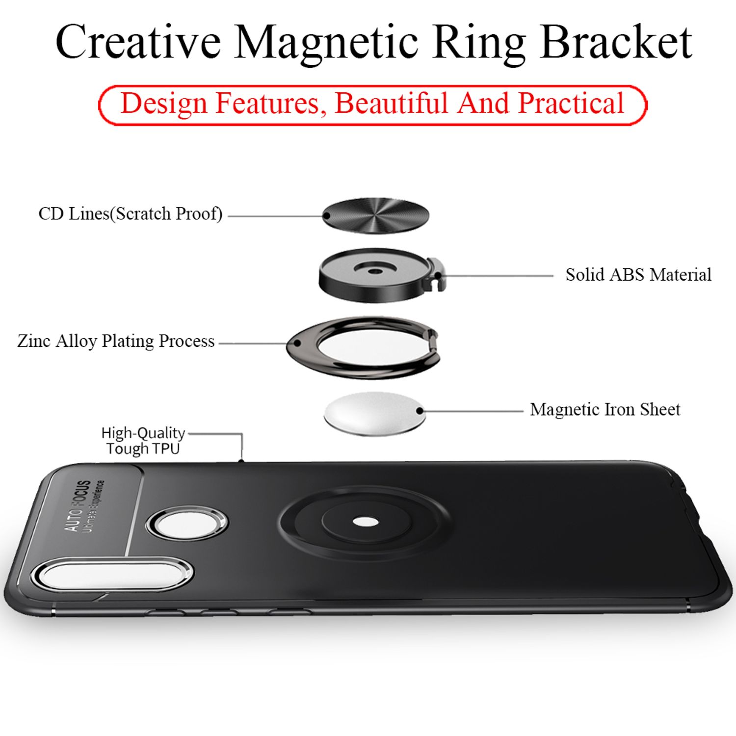 NALIA Ring Case for Huawei P smart 2019, Magnetic Silicone Phone Case Cover