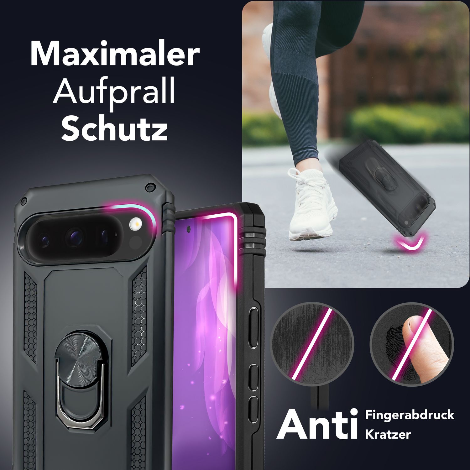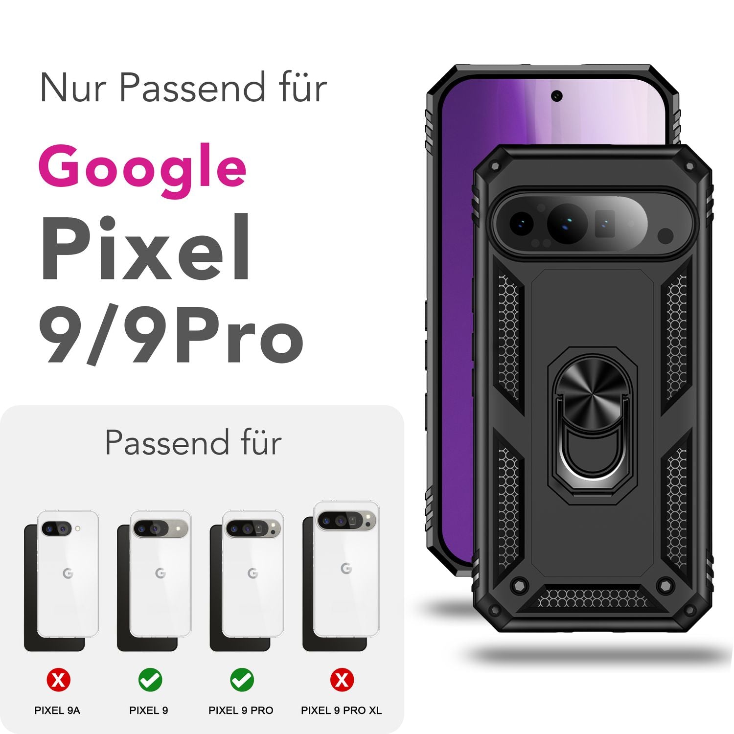 NALIA RingDefend Case for Google Pixel 9 Pro – Shockproof Phone Case with 360° Finger Holder & Kickstand, Military Style Armor Case with Impact Protection, Heavy-Duty Phone Case - Black