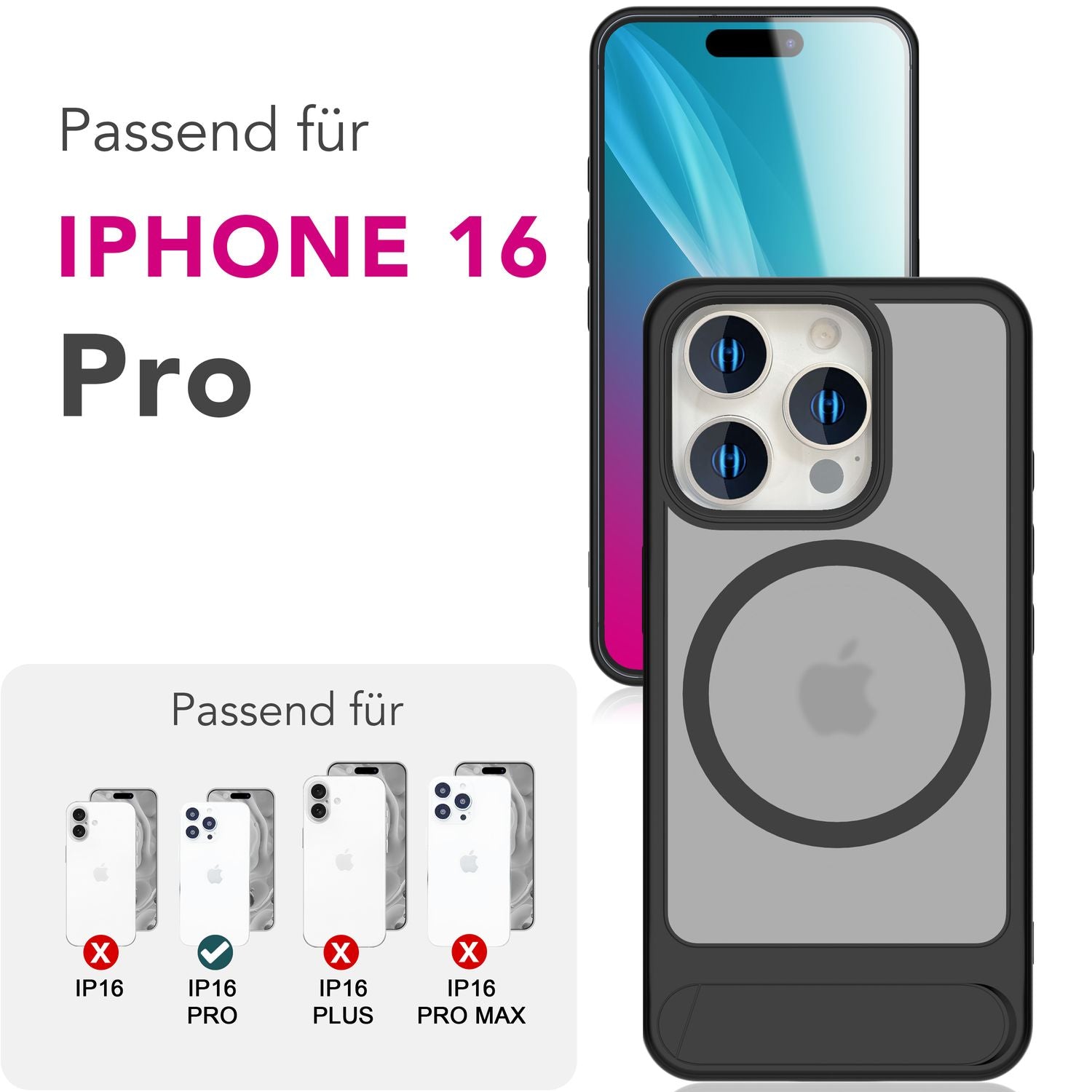 NALIA Triton Case for iPhone 16 Pro [for MagSafe], Matte Transparent Case with Kickstand, Shockproof & Scratch-Resistant, Robust TPU Frame, Stable Back with Magnetic Ring