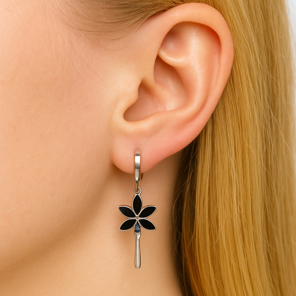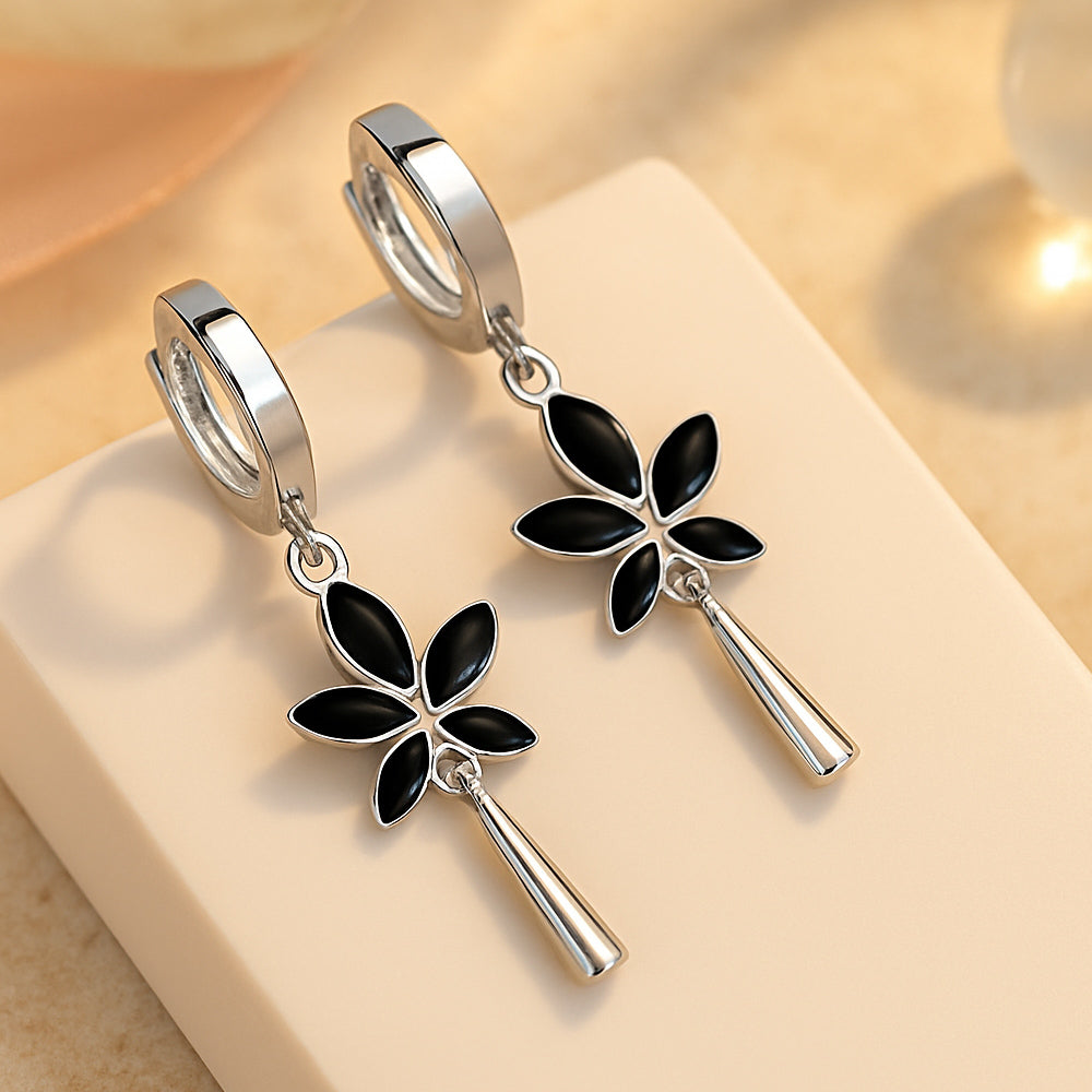 Ohrringe aus 925er Sterling-Silber, Creole hängend mit schwarzen Blättern