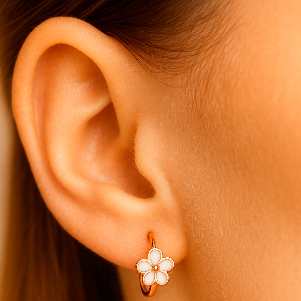 Ohrringe aus 925er Sterling-Silber, weißes Blümchen