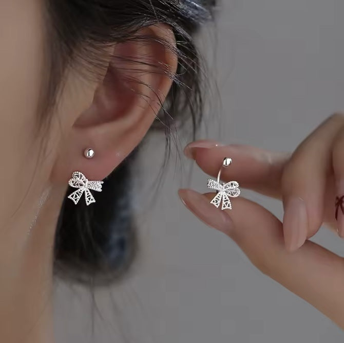 Ohrstecker aus 925er Sterling-Silber, Filigrane Schleife, 10mm