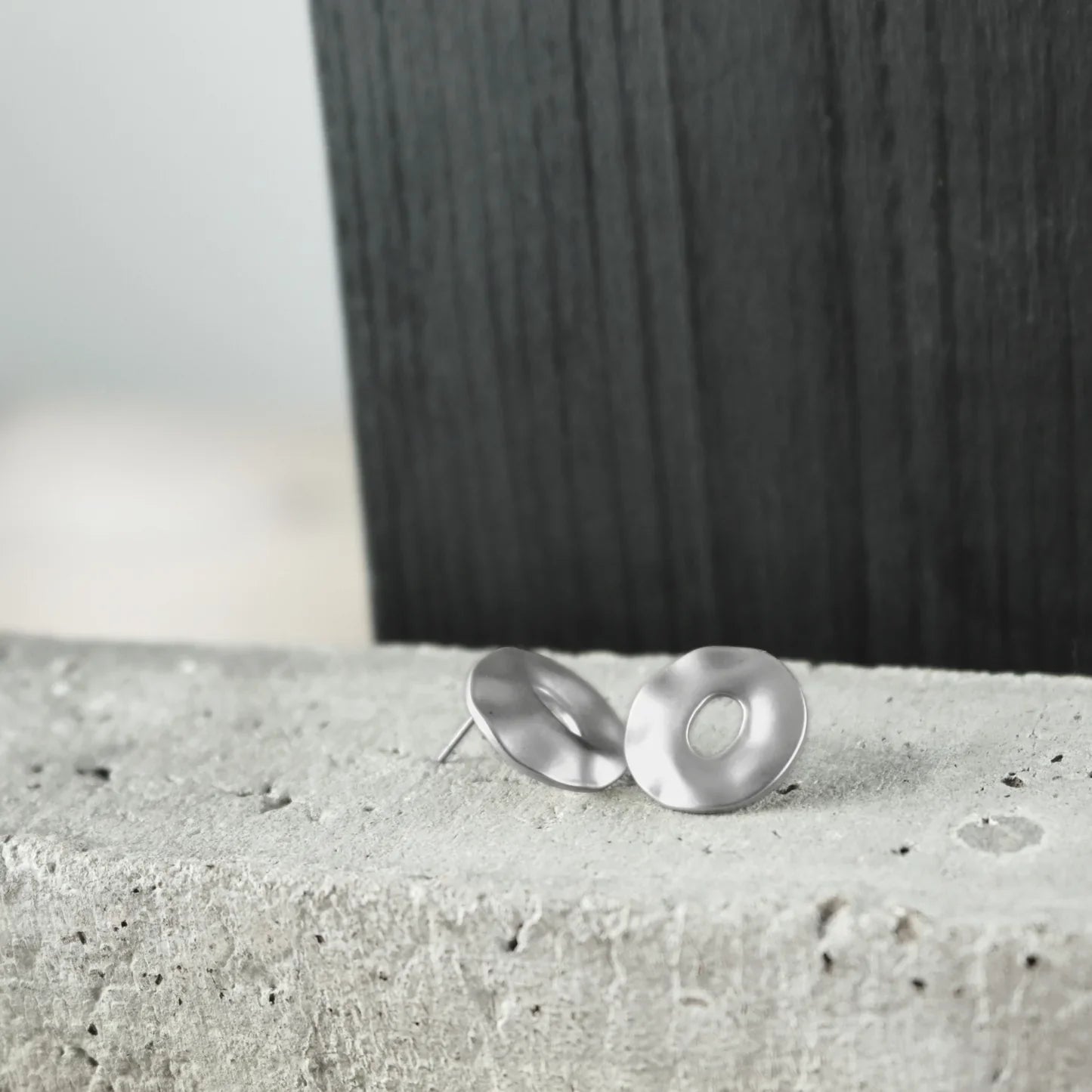 Modische, organisch geformte Ohrstecker aus matt versilbertem oder vergoldeten Messing.