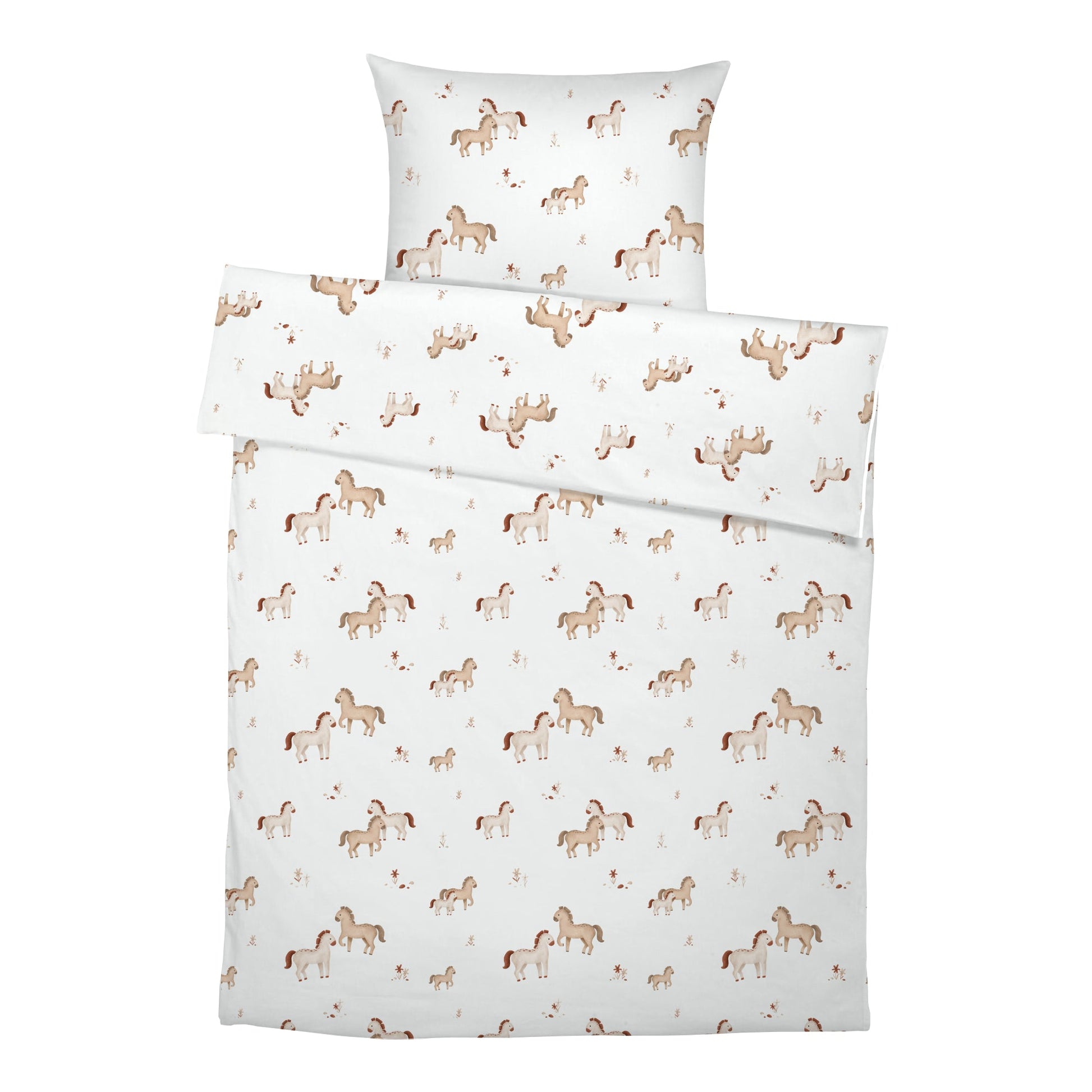 Our Little Horses design brings the magic of horses directly into the children's room. Gentle watercolor illustrations in warm beige and brown tones create a cozy, natural atmosphere – perfect for snuggling up and galloping off to dreamland.