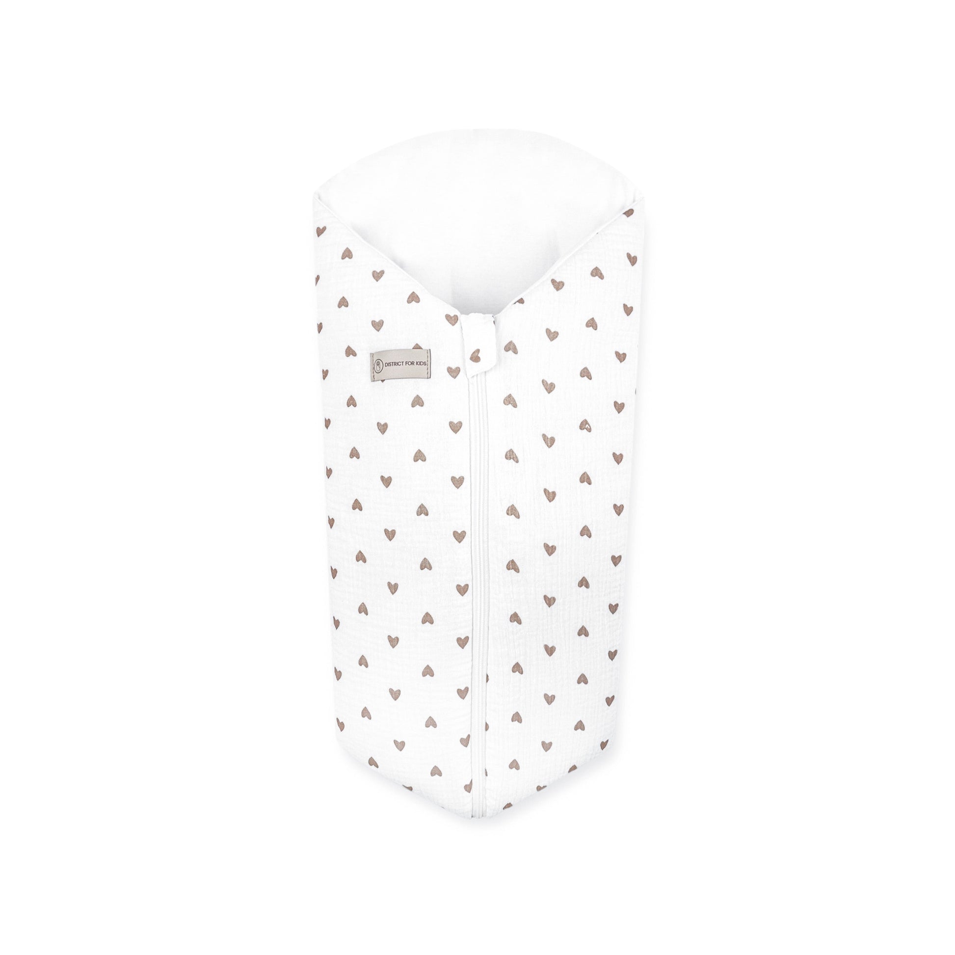 Pucksack Musselin Herzen braun mitwachsend – Ganzjahres Babyschlafsack
