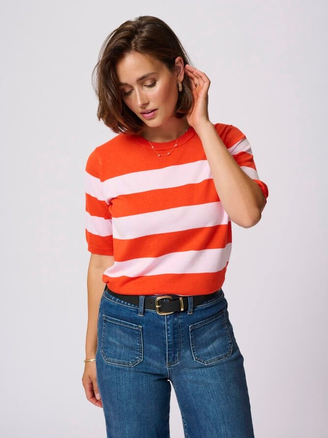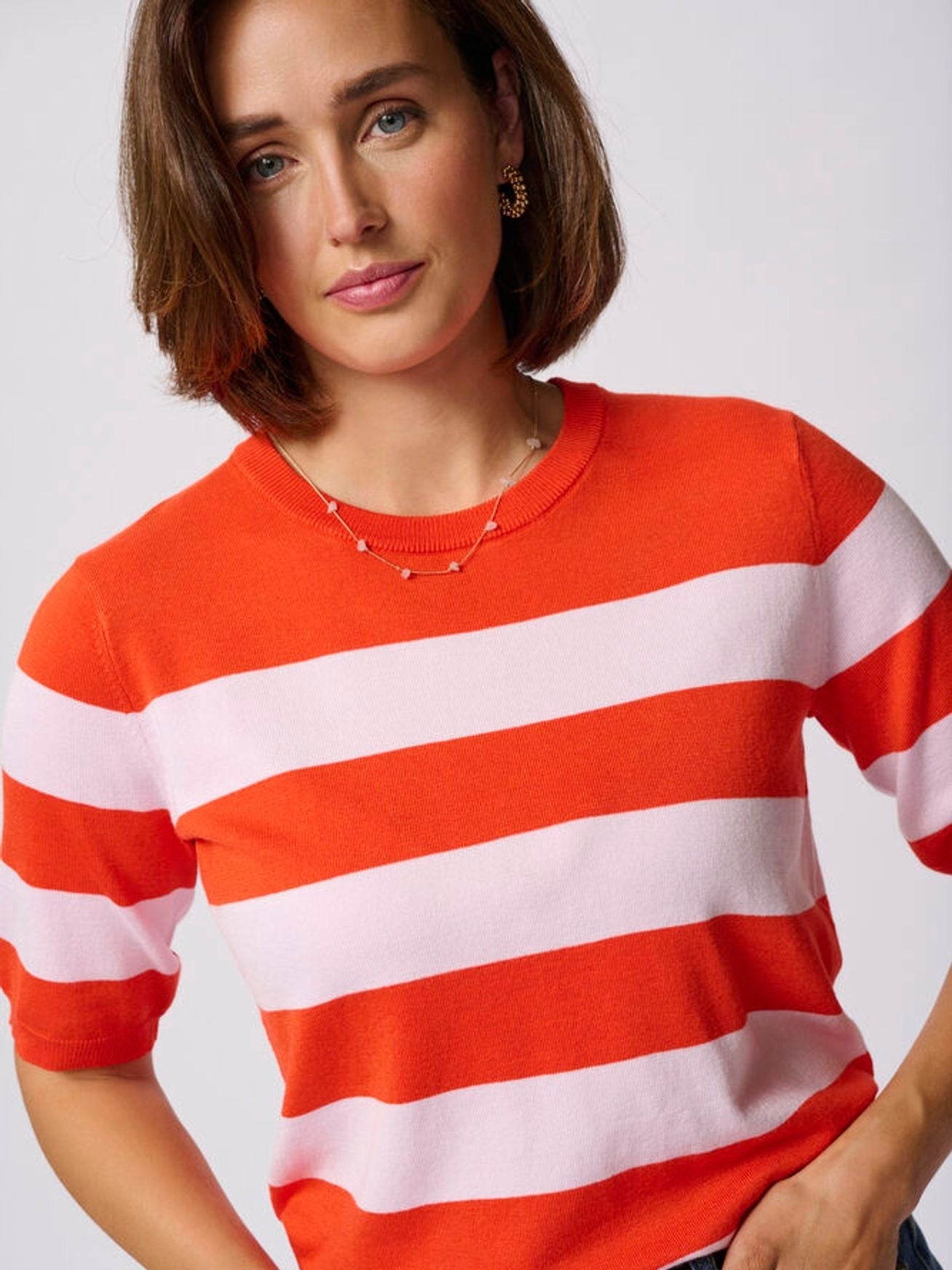 Sportlich eleganter Pullover mit Blockstreifen in einer soften Viskosemischung. Rundhalsausschnitt, halblange Ärmel und gerade Form. Ideal auch unter leichten Jacken oder Blazern.