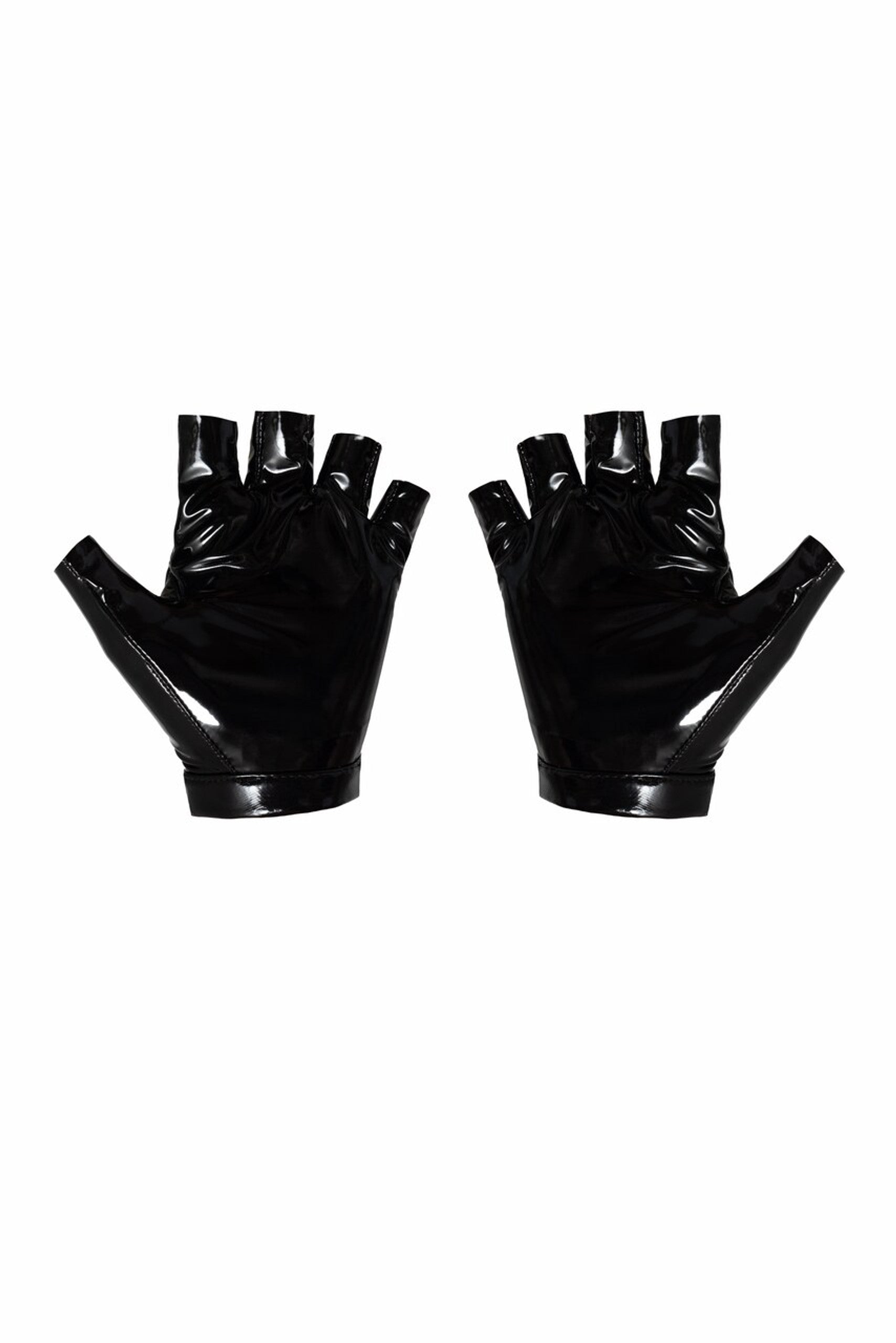 PVC fingerless gloves with gold elements. A great finishing touch for any outfit!
