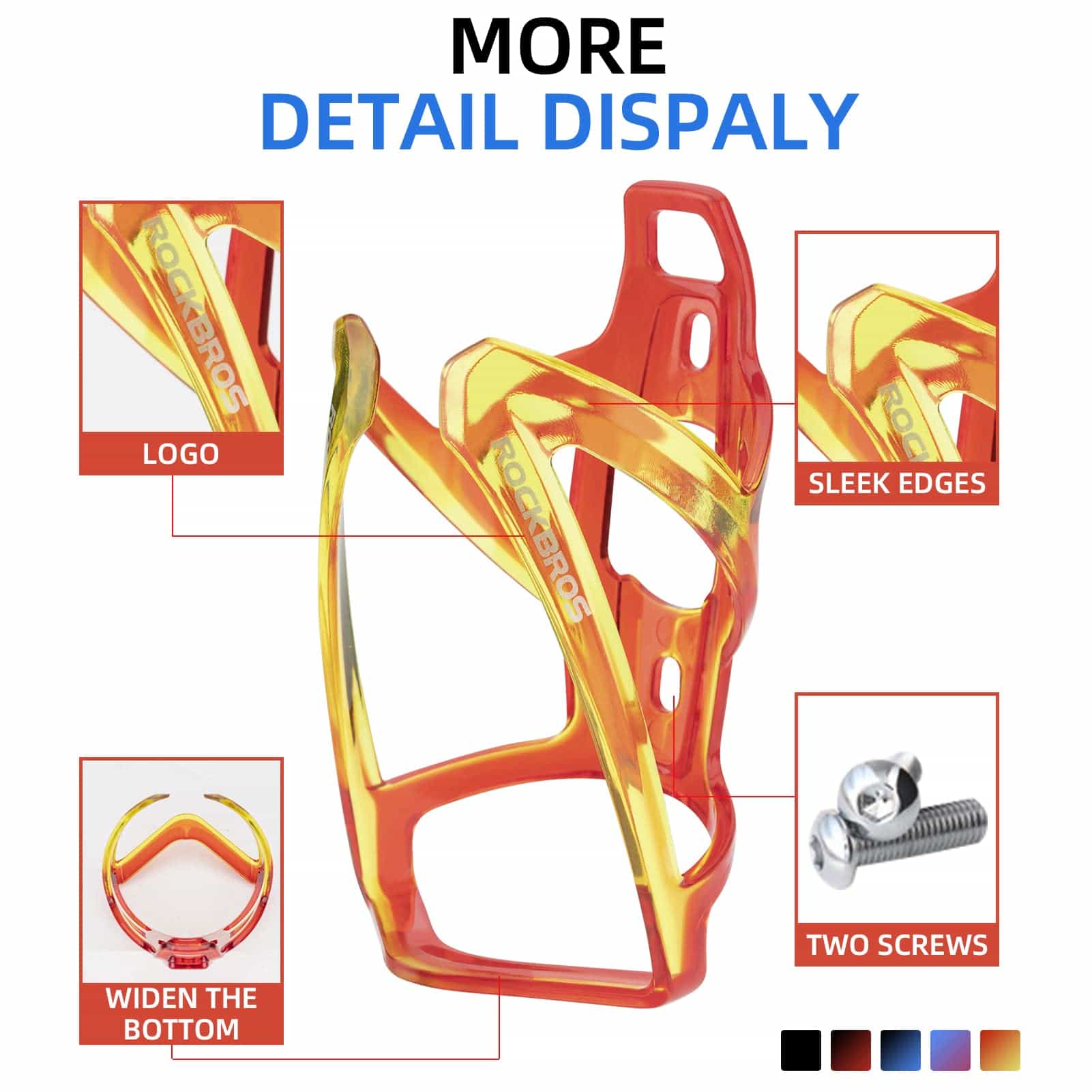 Robustness and durability : The ROCKBROS bicycle bottle cage is cast in one piece from a high-quality aluminum alloy. High strength, good corrosion resistance, not easily deformed, longer service life.