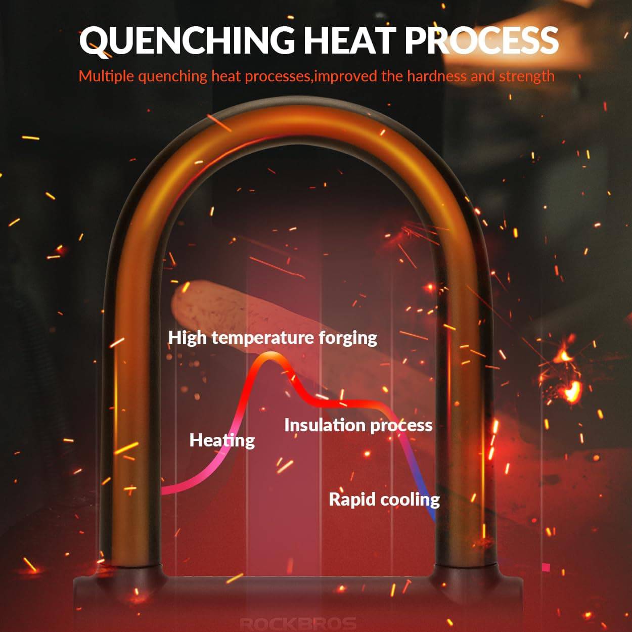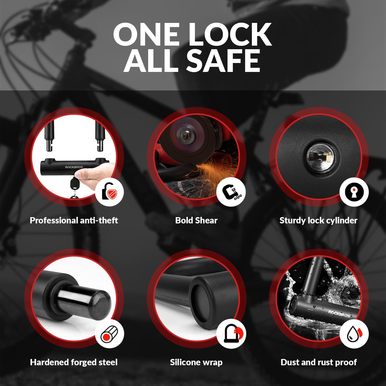 - Resistant to theft: High-strength, heat-treated steel increases the hardness and security of the U-lock. The robust zinc alloy cylinder is dustproof and rustproof.