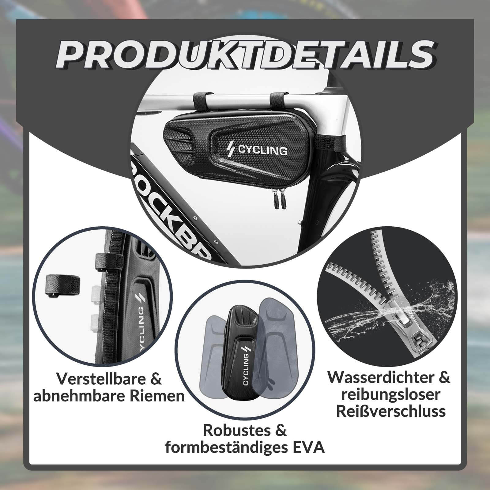 This bike bag is not only extremely robust, but also incredibly easy to install. With three adjustable Velcro straps, you can easily mount this frame bag in a suitable position. Ensure a comfortable journey and enjoy it to the fullest.