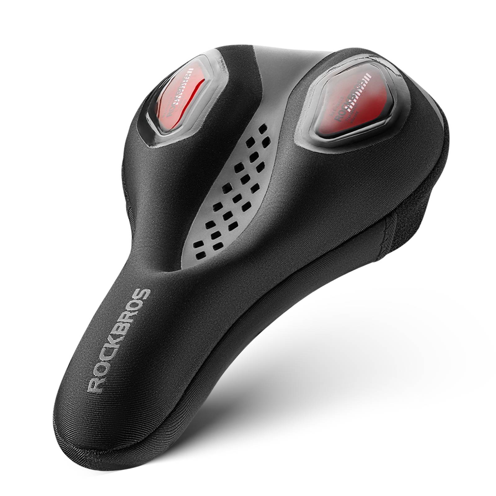 The ROCKBROS bicycle saddle cover is made of temperature-sensitive, slow-rebound foam and silicone, which acts as a rebound and shock absorber. The hollow design prevents stuffiness. A large, non-slip silicone surface on the back keeps it securely in place while riding.
