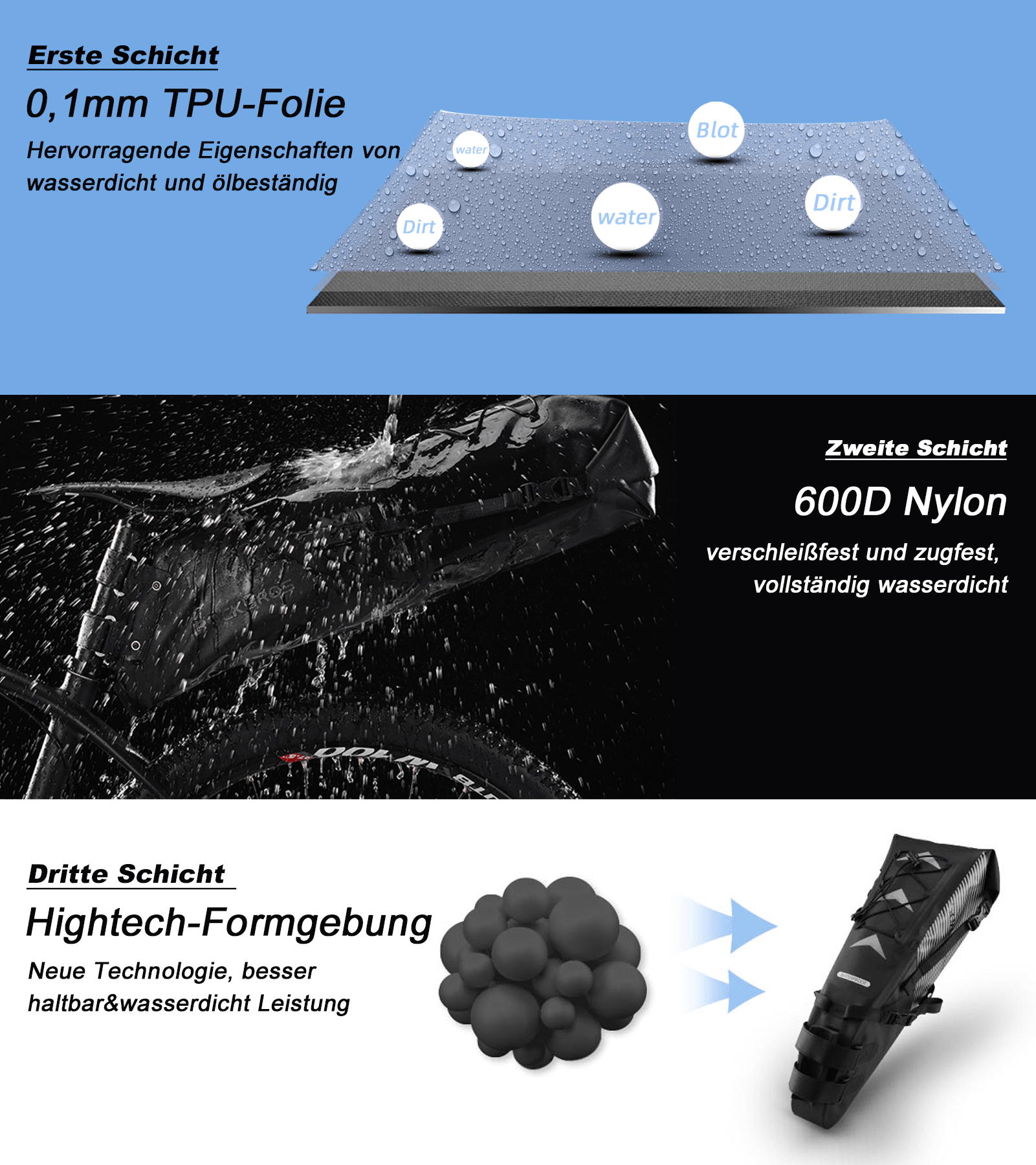 - AS MUDGUARDS: The bag can be used as bicycle mudguards. And the material is very light and easy to clean with a damp cloth.