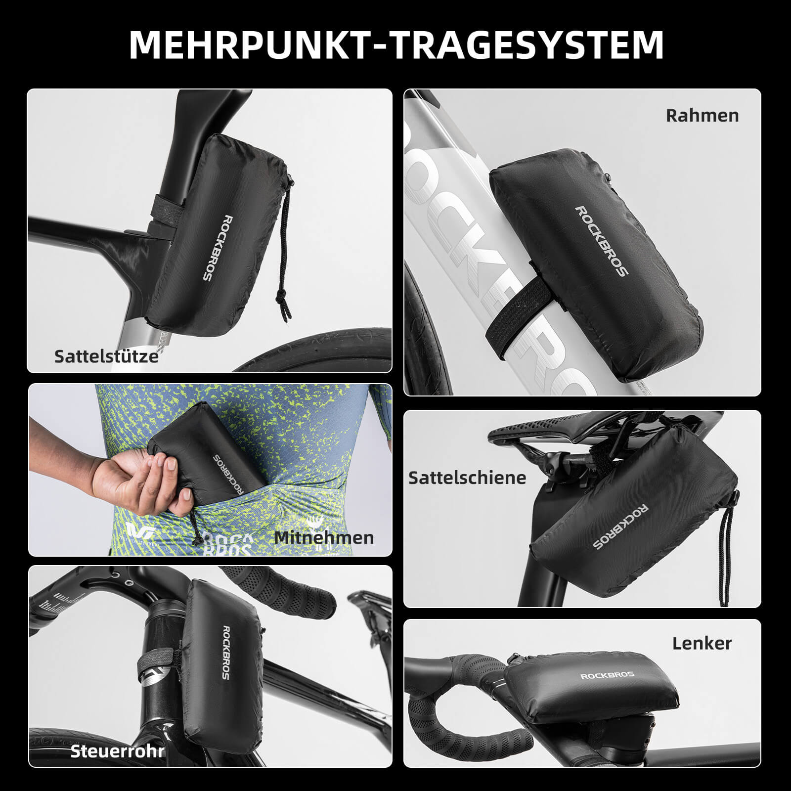 The surface of the bicycle cover is made of water-repellent fabric that keeps your belongings dry in the rain. Take important items with you without fear of water damage.