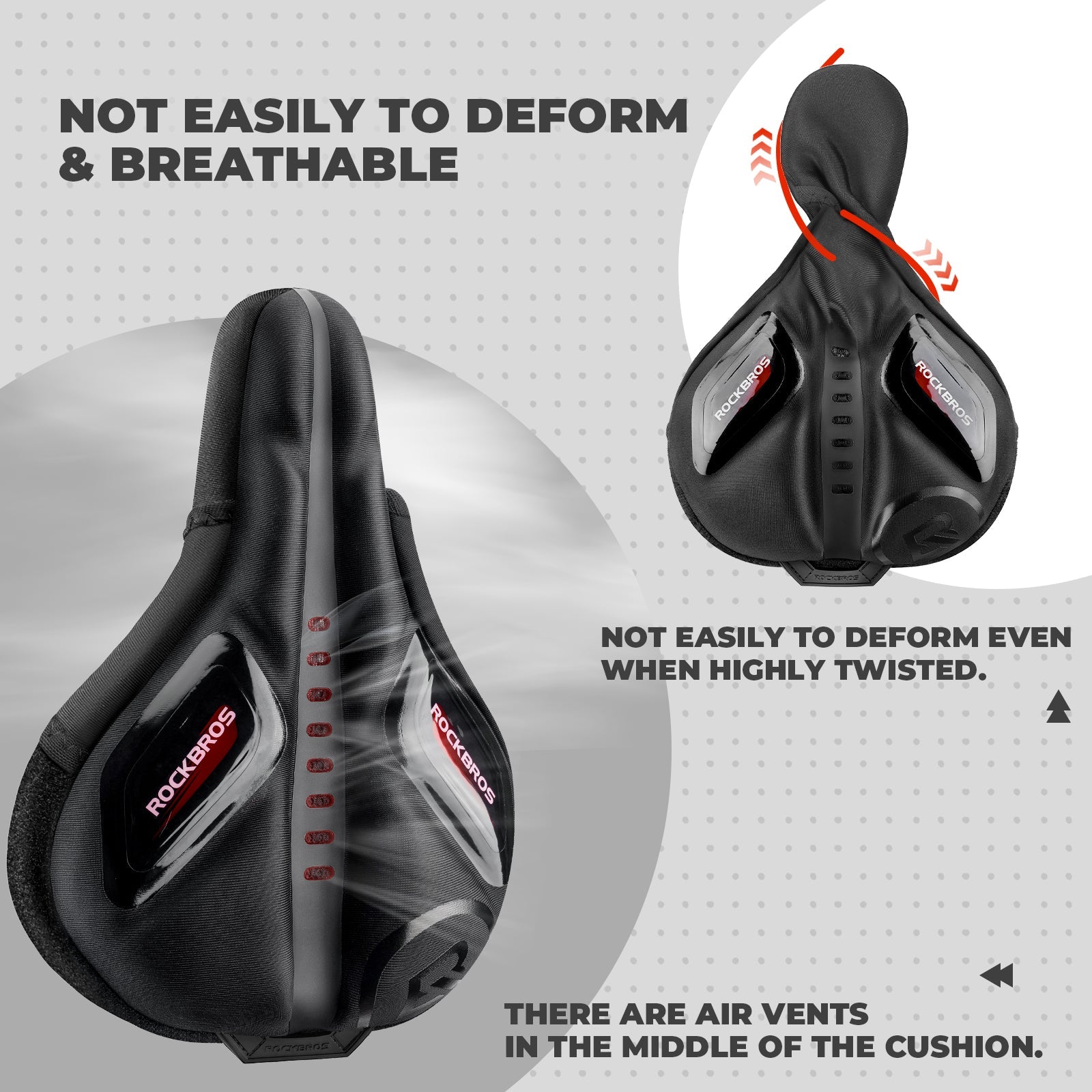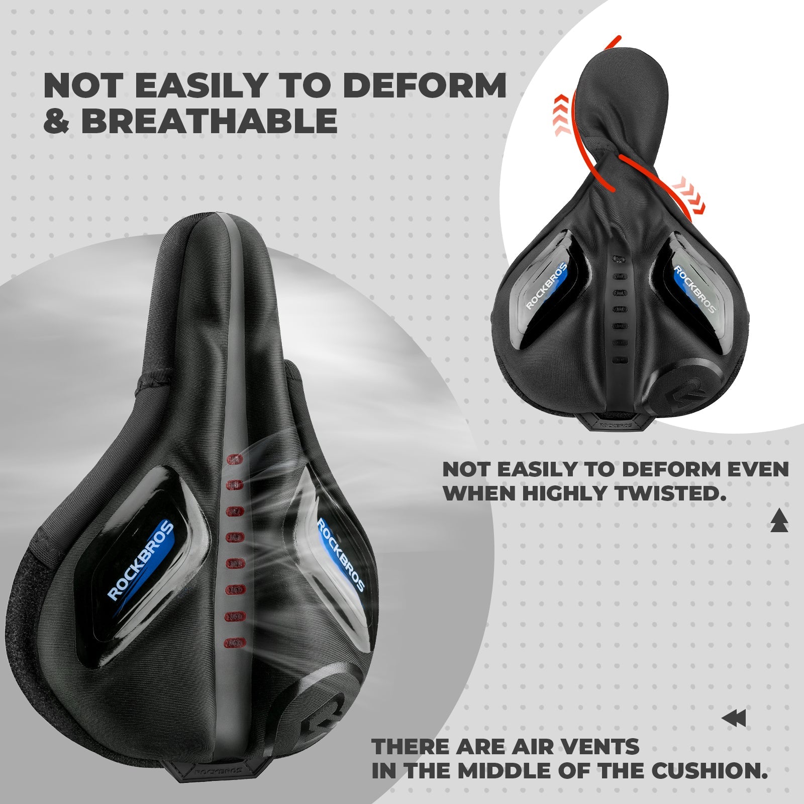 The hollow breathing holes and air transfer slot design in the saddle cover allow for free air circulation and rapid heat dissipation. The neoprene material on the surface quickly absorbs and evaporates moisture, ensuring that the intimate areas remain dry and comfortable even on long rides.