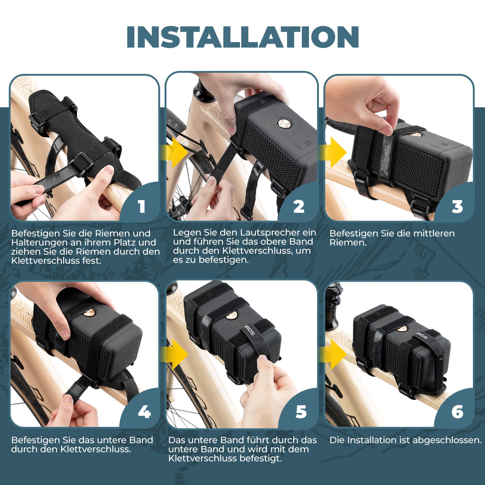 ROCKBROS speaker mount for bicycles – flexibly mountable for speakers and bottles. Non-slip and stable, it protects the bicycle frame and ensures a secure hold on rides.