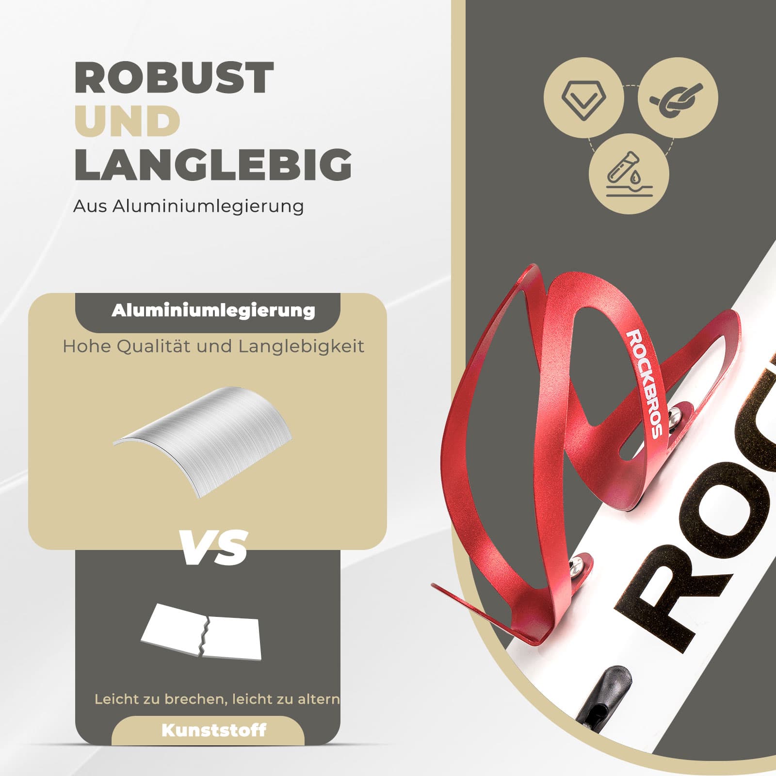 Robustness and durability : The ROCKBROS bicycle bottle cage is cast in one piece from a high-quality aluminum alloy. High strength, good corrosion resistance, not easily deformed, longer service life.