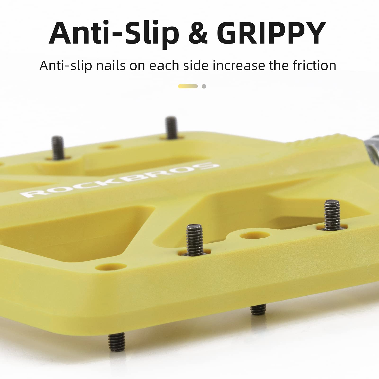 10 non-slip nails on each pedal provide excellent grip and will not damage shoes.