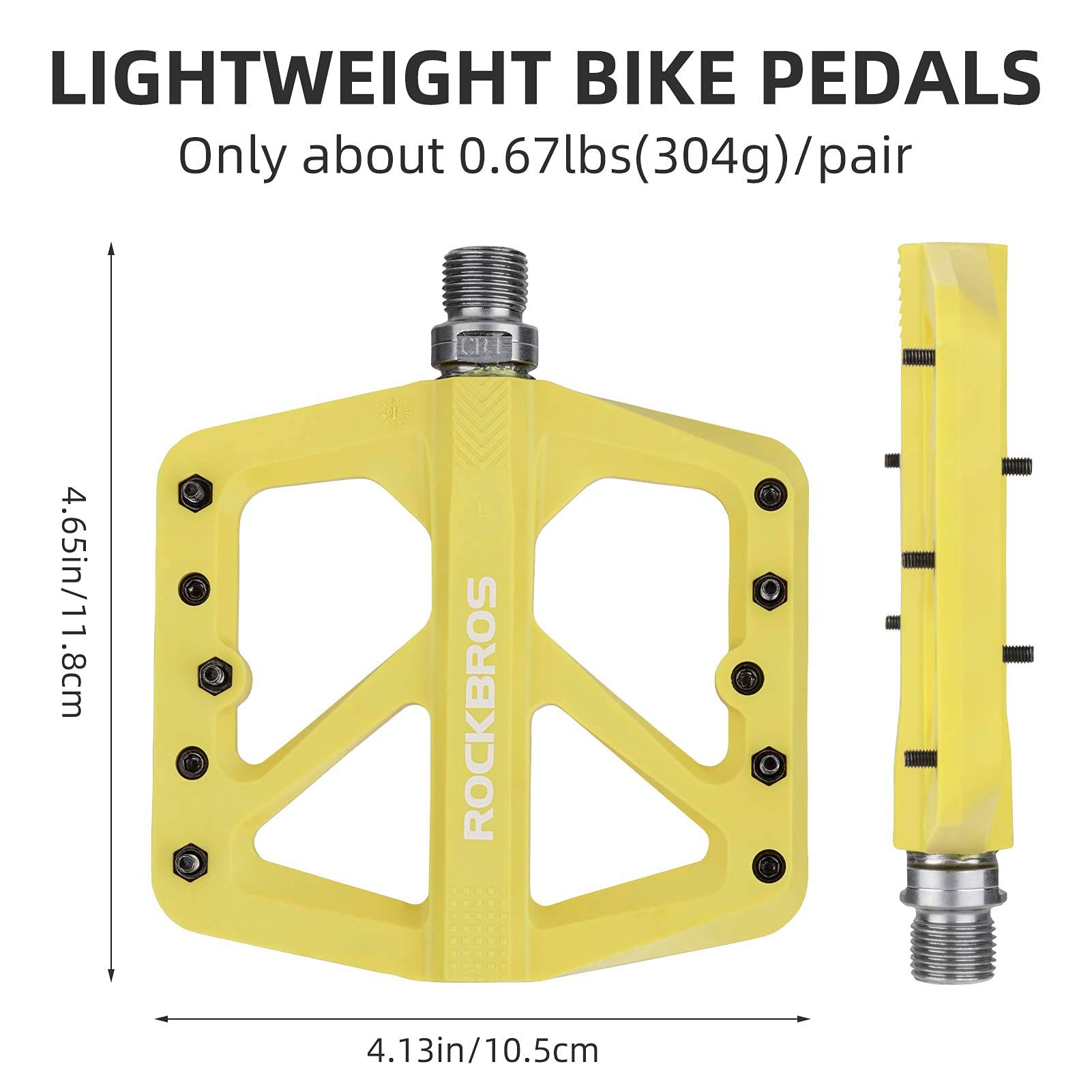 Experience a unique riding experience with ROCKBROS flat pedals! The non-slip nylon pedals offer a secure grip, and the three sealed bearings ensure smooth operation. Perfect for mountain bikes and road bikes.