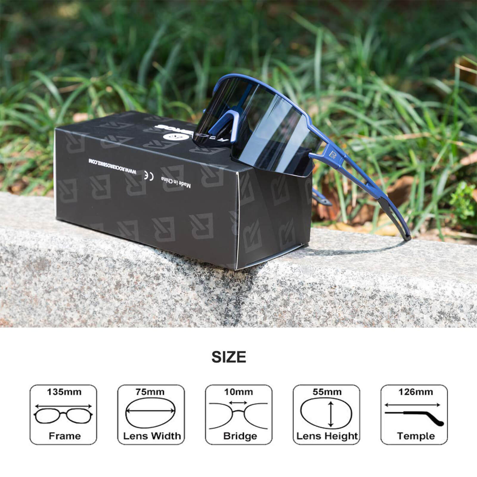 Enjoy ultimate protection from harmful UV rays with ROCKBROS sunglasses for men and women. Their photochromic function automatically adjusts to changing light conditions. With their sporty design and UV protection, they are the perfect choice for all cyclists. (Lens not replaceable)