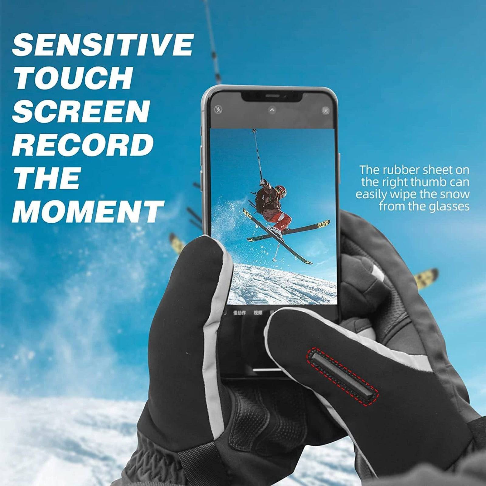 - The fingertips of the index finger and thumb of our ski gloves are made of conductive fabric. The touchscreen design allows you to use your phone without removing your gloves. It's convenient for taking photos and videos and answering calls while skiing. You can also use your navigation device while skiing.