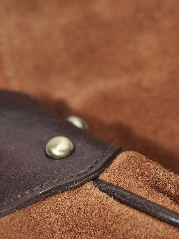 Diese lässige Schultertasche ist aus hochwertigem Veloursleder gefertigt und hat einen farblich abgesetzten Trag- und Verschlussriemen aus dunkelbraunem Glattleder. Mit Reißverschluss zu schließen. Innen mit Baumwollfutter und einer verschließbaren Tasche sowie einem Ablagefach gearbeitet.