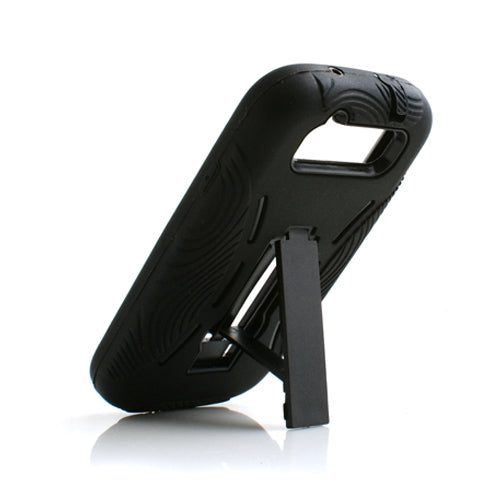With this combination, you have two cases for your Samsung Galaxy S3 in one. The sturdy and robust plastic case fits perfectly on the device and offers protection against scratches and wear and tear. For even more secure protection, you can also add the silicone protective case. The silicone and protective case fit together perfectly. With an integrated kickstand.