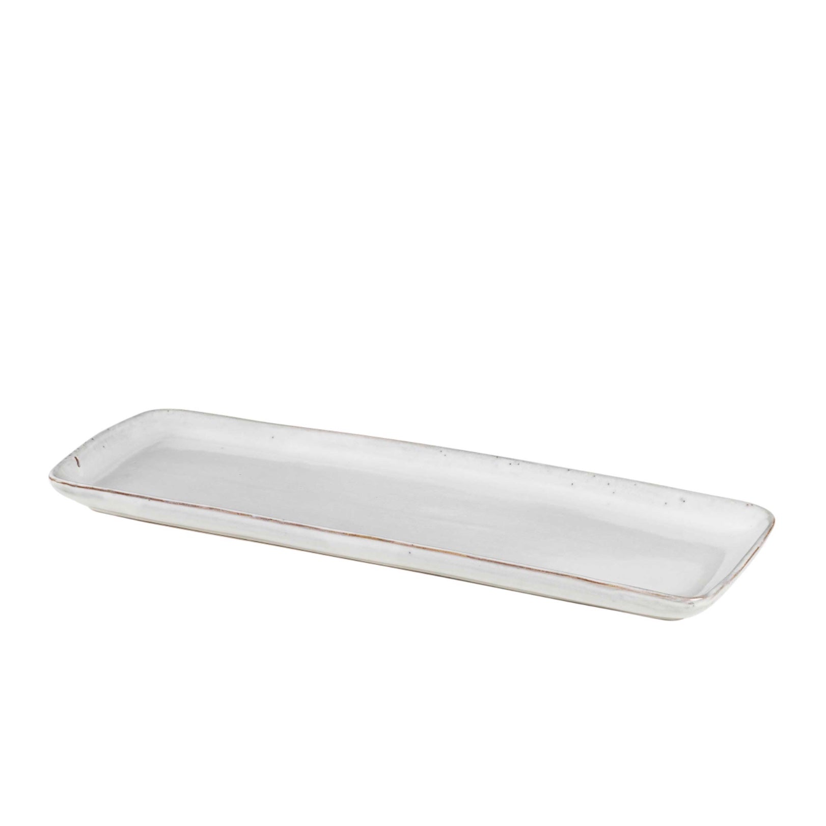 Rechteckige Servierplatte der Serie Nordic Sand aus Steingut. Ideal auch für Sushi und Antipasti, als Gebäck- oder Käseplatte, für Beilagen oder Kuchen. Jedes Teil fällt in Form, Farbe und Struktur etwas unterschiedlich aus. Unebenheiten unter der Lasur sind gewollt und Bestandteil des nordischen Designs. Weitere Teile der Serie werden ebenfalls angeboten.