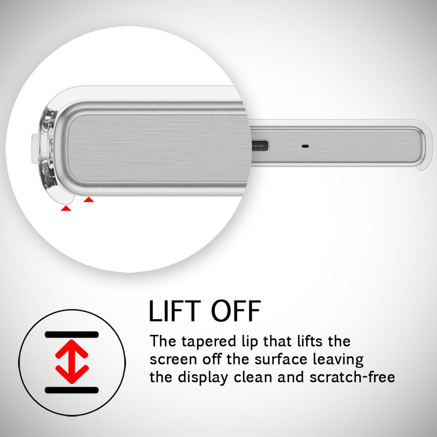The case's frame extends slightly beyond the display, preventing it from resting directly on surfaces. This keeps your display clean and scratch-free.
