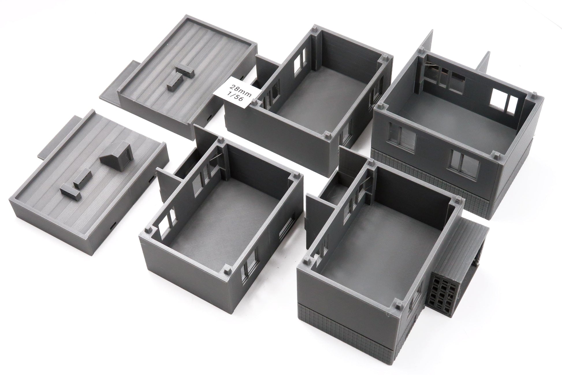 Please note that all parts come unpainted and unprimed, though I ensure they are cleaned up before shipping. Some small fibers may still be present. Buildings come in either grey or black and are available in three scales: 15mm, 20mm, and 28mm.
