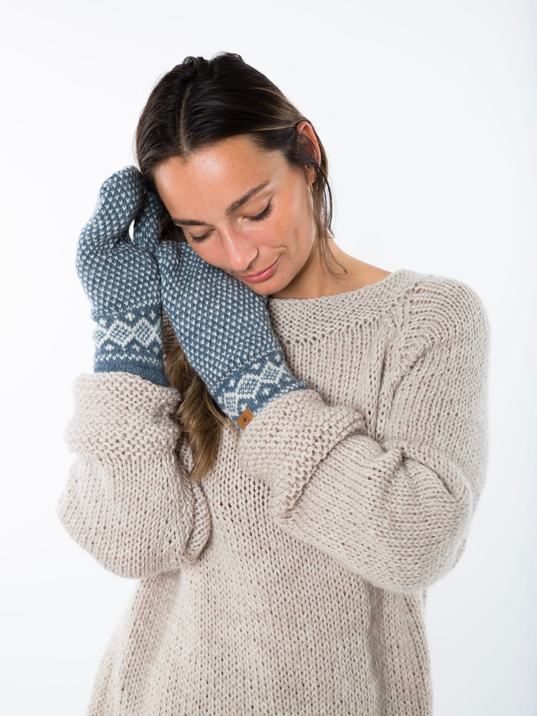 Modische Strickfäustlinge im Norweger Muster aus besonders weicher Lambswool. Die Wolle atmet und hilft, die Körpertemperatur zu regeln.