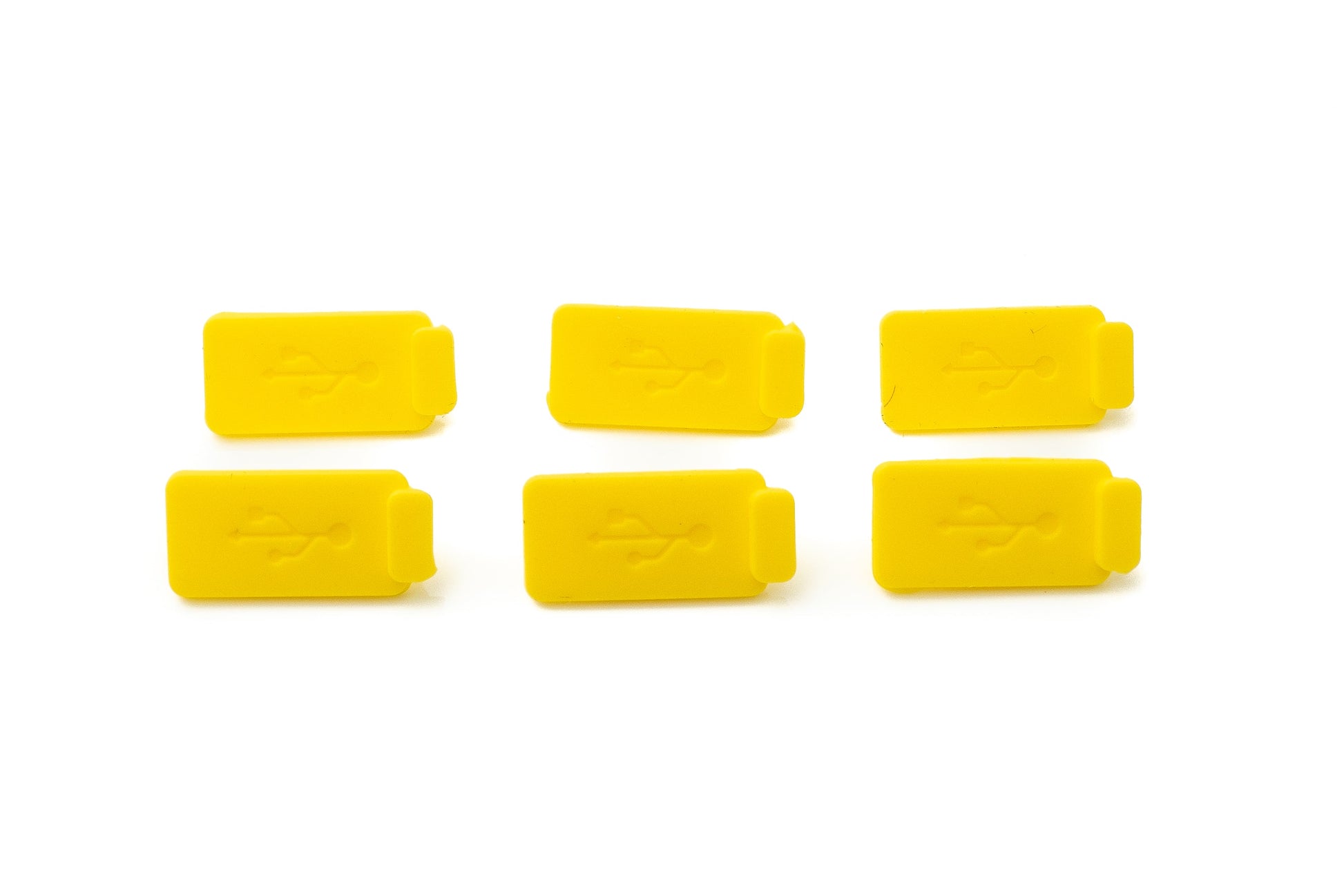 SYSTEM-S 6x USB Type A Anti Dust Protection Cover made of silicone in yellow