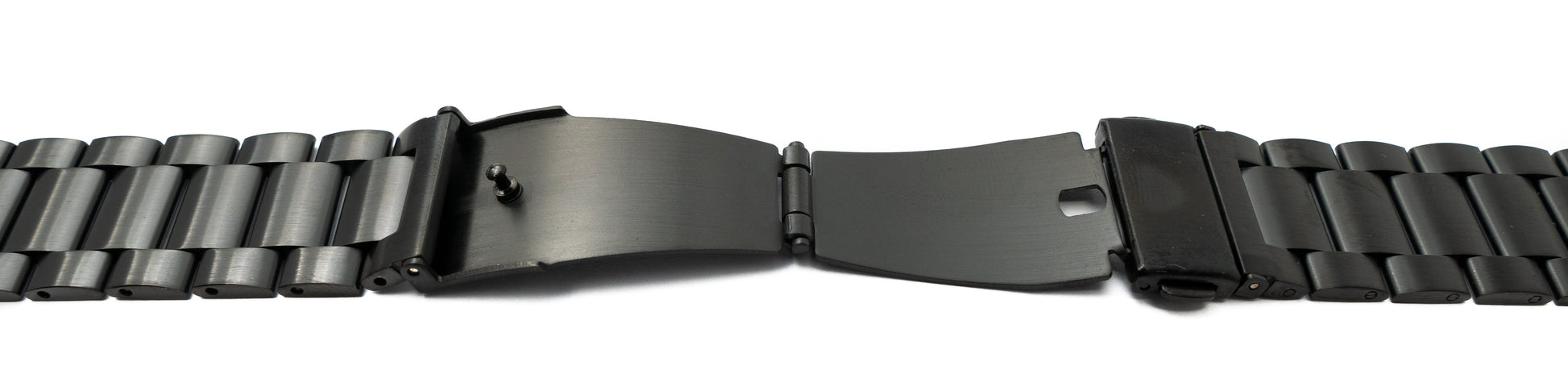 Verleihen Sie Ihrer Smartwatch mit dem SYSTEM-S Metall-Armband in elegantem Schwarz einen stilvollen und professionellen Look. Hier sind die Details: