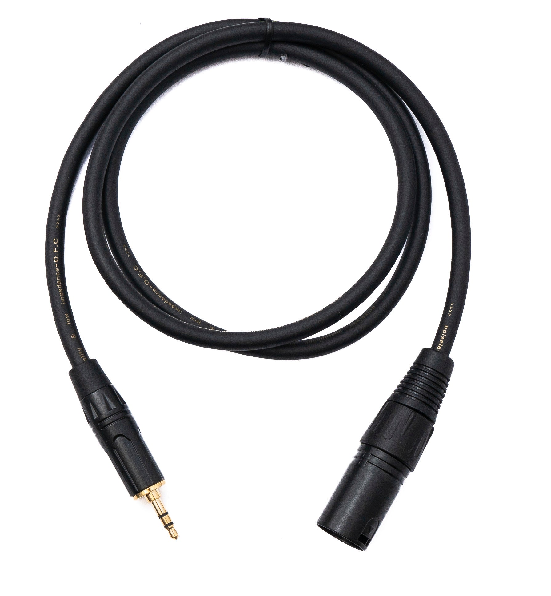 Transmits audio signals between 3.5mm 3-pin TRS (Tip-Ring-Sleeve) and XLR 3-pin