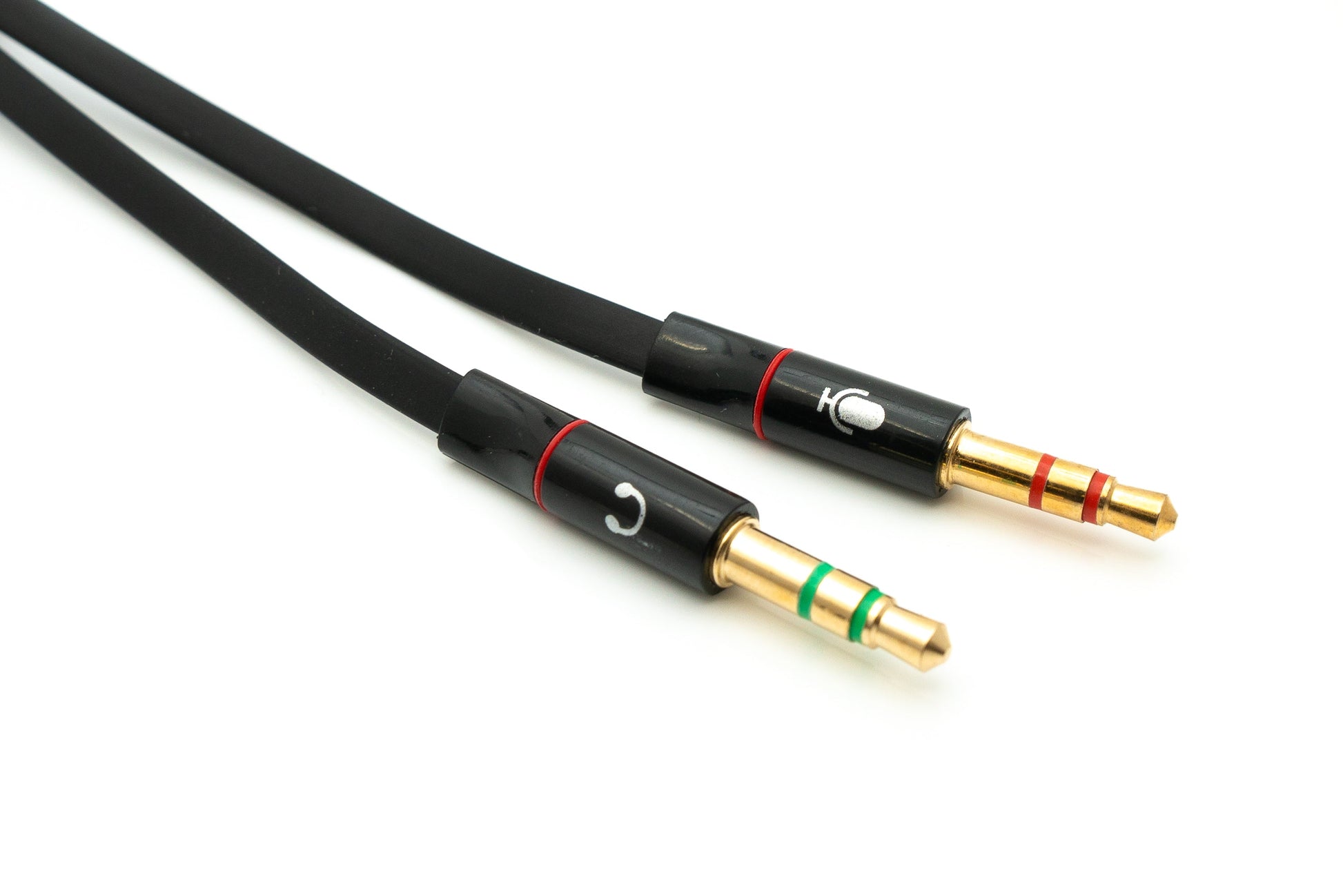 The SYSTEM-S Audio Y cable is a practical adapter that splits stereo audio and microphone signals from a 3.5 mm jack socket to two 3.5 mm jack plugs.