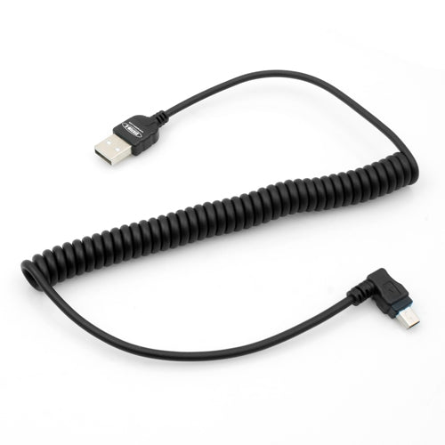 SYSTEM-S Dehnbares Mini USB Kabel Datenkabel Ladekabel Spiralkabel Winkelstecker 50 - 135 cm